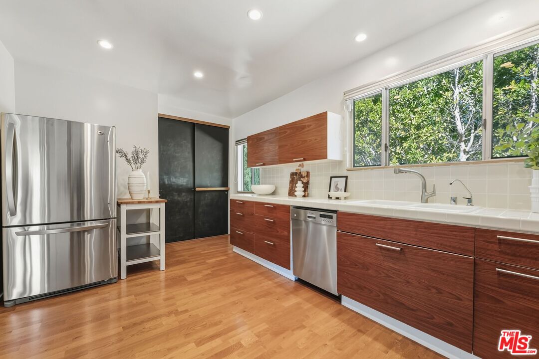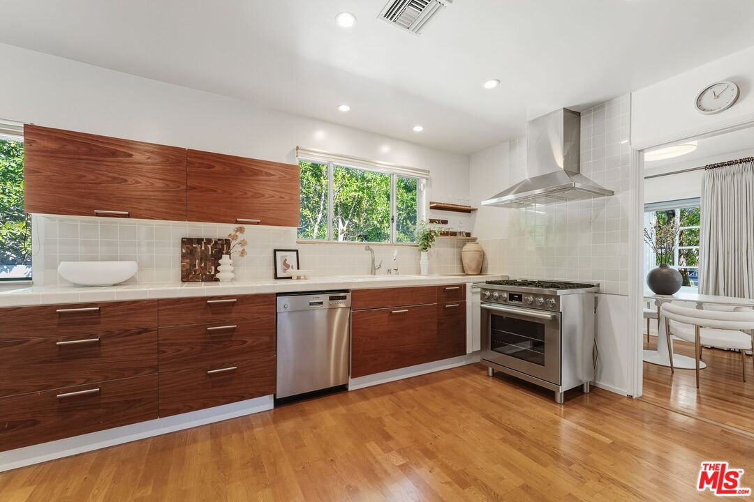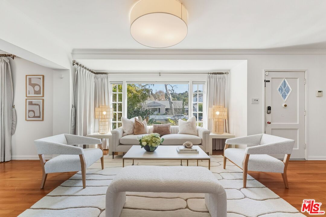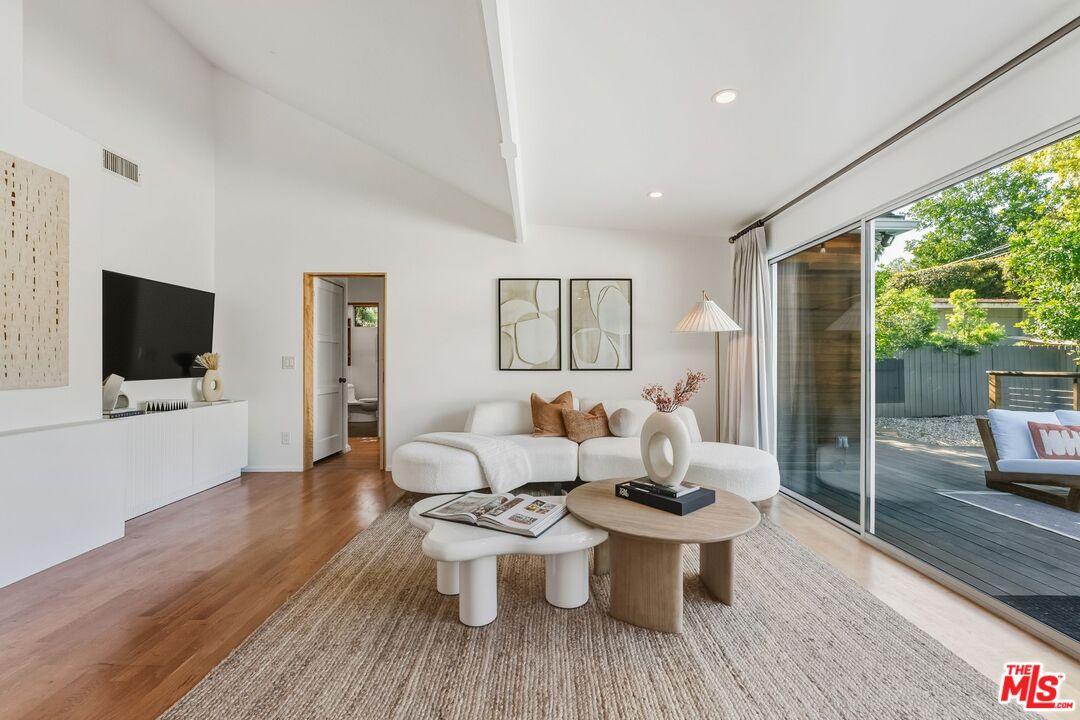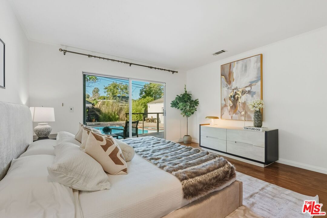 Tucked South of the Blvd in prime Studio City, 4001 Alcove Avenue is a move in ready, single level traditional offering 2 bedrooms and 2 bathrooms on a 7,202 SF lot. Thoughtfully designed for effortless indoor/outdoor living, the home features two generous living rooms, a separate dining room, and vaulted ceilings that create a bright, airy feel throughout. The updated kitchen is appointed with Bosch appliances and opens seamlessly to the main living spaces. Expansive sliding glass doors lead to a Brazilian teak deck and a resort style backyard with pool and spa, creating an ideal setting for entertaining and everyday enjoyment. The primary suite opens directly to the yard, while the secondary bath includes a walk in steam shower for a spa like experience at home. Arrive through a circular driveway with additional gated parking leading to a detached two car garage, perfect for storage, gym, studio, office, or a future ADU. Ideally located minutes to Ventura Blvd and The Shops at Sportsmen's Lodge, near Harvard Westlake Upper School, in the coveted Dixie Canyon district.