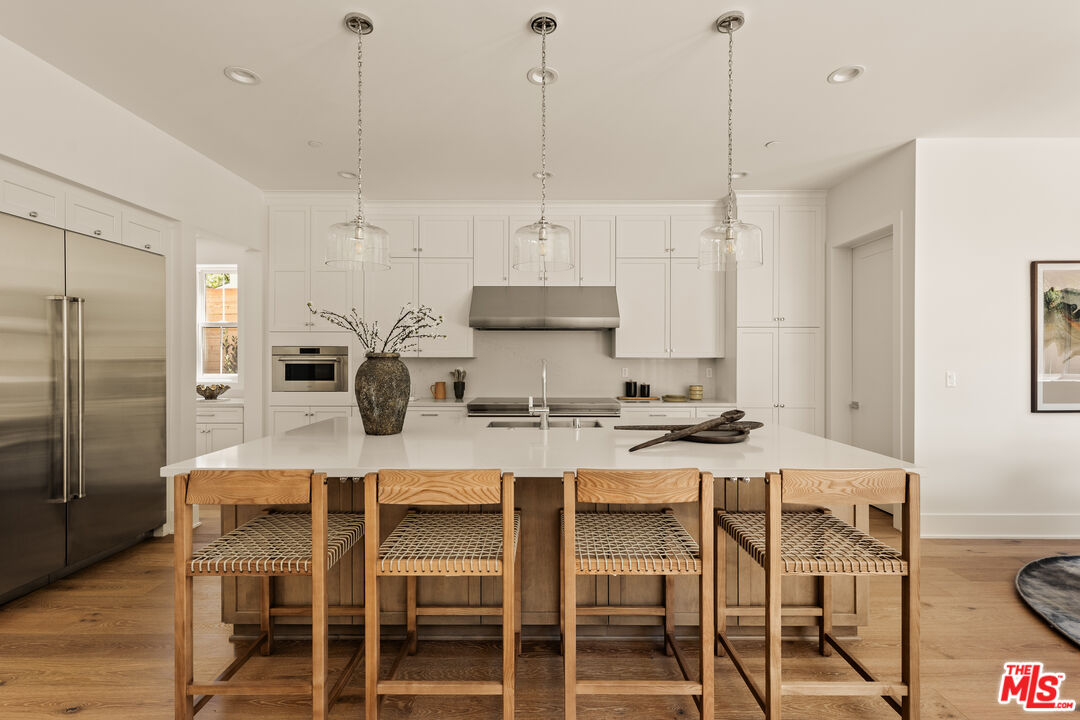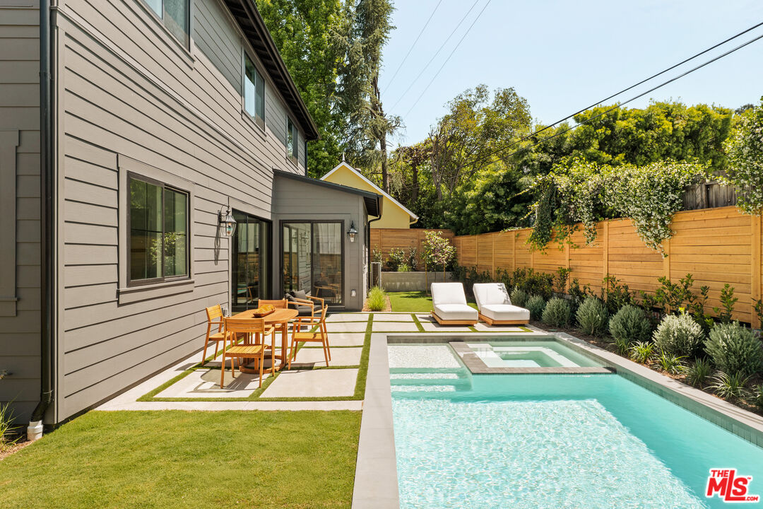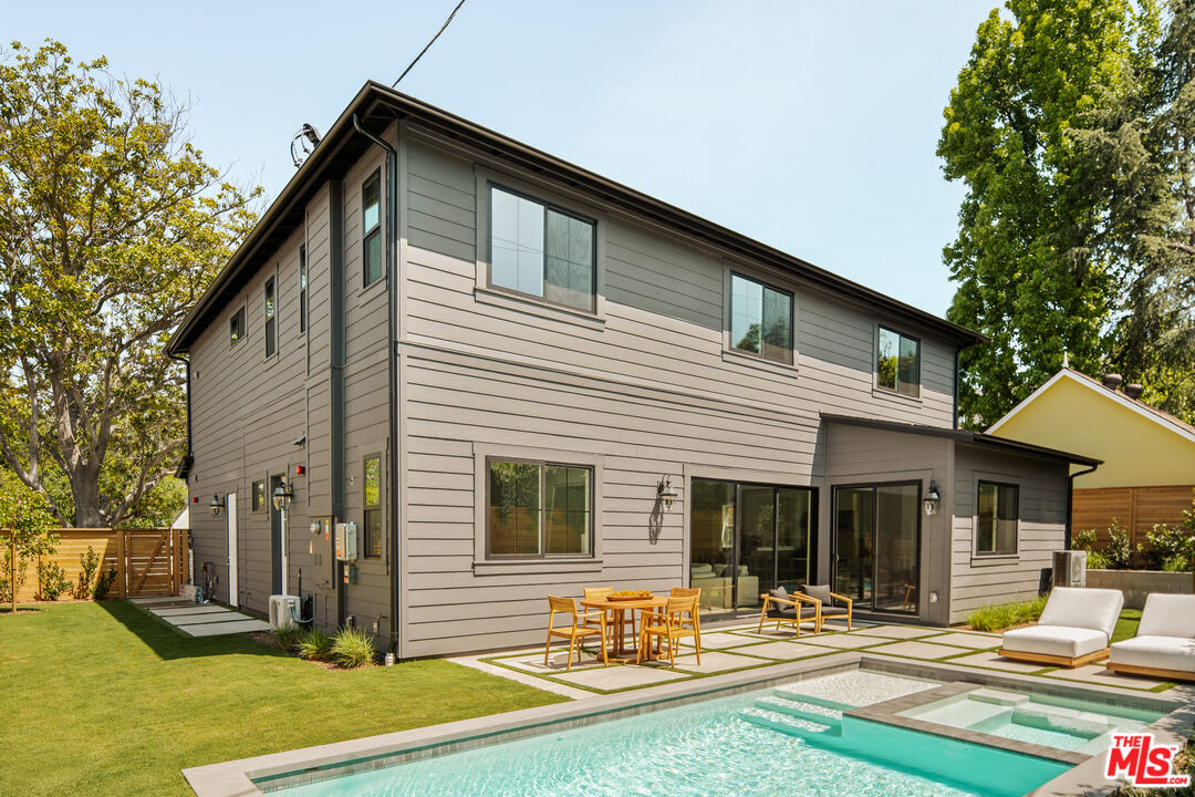 Located in a charming enclave of Sherman Oaks, this nearly complete, 4-bedroom, 4 and a half-bath is built by TJH using only the highest quality materials and finishes. The gracious entry leads to the gourmet kitchen equipped with top-of-the-line Wolf and Sub-Zero appliances, a walk-in pantry, a butler's pantry, a large island with bar seating, and a sunny breakfast nook. The kitchen opens to the great room with a dazzling fireplace. Sliding doors from the great room open to the patio and inviting backyard with a sparkling pool perfect for relaxing & entertaining. The glorious open floor plan provides a grand space for the dining and living room with a gorgeous fireplace. The first floor is complete with a full bathroom, powder room, and mud room off the attached 2-car garage. The second floor has a good-sized loft with a built-in desk, two secondary bedrooms, both ensuite with walk-in closets, and a laundry room with a sink. The luxurious primary suite has a walk-in closet and an ensuite bath with a dual-sink vanity, a freestanding tub, and a walk-in shower. The attached junior ADU studio is on the first floor and is equipped with a kitchenette and sizeable closet space. The full bathroom downstairs is just off the JADU. New TJH homeowners will receive a complimentary 1-year membership to Inspirato, a leader in luxury travel. Completion dates are subject to final permits being received. Home, pricing, and community information is subject to change, on homes prior to sale, at any time without notice or obligation. Square footages and dimensions are approximate and may vary in construction and depending on the standard of measurement used, engineering and municipal requirements, or other site-specific conditions. The square footage listed for this property is an approximation and Seller and Seller's Broker/Agent do not guarantee the accuracy of this information. If square footage is material to Buyer's purchasing decision, Buyer is advised to independently verify the square footage, lot size, and all other property dimensions during the buyer's investigation period and rely solely on their own investigations and those of professionals retained by Buyer. Imagery is representational and does not depict specific details. All information subject to change. No representations or warranties, express or implied, are made by Seller regarding square footage. Illustrative landscaping shown is generic and does not represent the landscaping proposed for this site. All imagery is representational and does not depict specific building, views or future architectural details.
