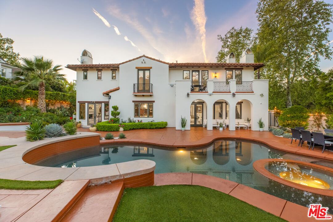Located within the prestigious guard-gated community of The Oaks of Calabasas, this extensively remodeled 5-bedroom, 6-bathroom estate spans approximately 6274 square feet on a sprawling 0.57-acre lot, showcasing timeless Mediterranean architecture, manicured landscaping, and exceptional curb appeal.A warm and inviting entry leads into thoughtfully updated interiors, where over $450,000 in upgrades elevate the home with new flooring, designer lighting, and freshly painted interiors and exteriors. The reimagined kitchen is complemented by expansive living spaces, rich wood detailing, and a built-in surround sound system, creating a refined yet comfortable atmosphere throughout.Designed for both entertaining and everyday living, the home features a custom built-in bar, formal dining room, and multiple gathering spaces that open to a private interior courtyardideal for seamless indoor-outdoor living. Walls of glass connect to the resort-style backyard, enhancing the home's natural flow.The primary suite serves as a true retreat, complete with a private sitting area, balcony off the bathroom, spa-like finishes, and generous his-and-hers walk-in closets. A dedicated wellness experience includes a private spa and sauna room, while a discreet panic room adds an additional layer of privacy and security.Outdoor living is elevated by over $250,000 in landscaping, featuring a resort-style pool and spa, custom barbecue area, retaining walls, and expansive patio spacesall set against tranquil hillside views.Adding flexibility and value, the property includes a detached approximately 800-square-foot 1-bedroom, 1-bath ADU, ideal for guests, extended family, or rental income.Residents of The Oaks enjoy access to resort-style amenities including a clubhouse, fitness center, tennis courts, and 24-hour security. Ideally located just minutes from premier shopping and dining at The Commons at Calabasas, outdoor recreation at Malibu Creek State Park, and within the award-winning Las Virgenes Unified School District. Enjoy convenient access to Westfield Topanga & The Village and the beaches of Malibu, offering a connected, lifestyle-driven Calabasas experience.