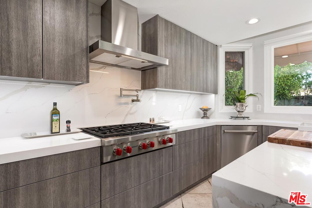 Step into this Studio City feel good gem on a storybook street in Colfax Meadows! Immaculate Traditional with a Contemporary Flair! Manicured curb appeal from the street to the back wall.. Grand scale from when you hit the double door entry. Two story, double wide entry hall, a stately living room with soaring ceilings and windows with impressive fireplace mantle. A dinner party sized dining room and butler's pantry transitions into a marvelous cook's Kitchen with attached spacious family room separated by a casual dining space. What a feeling of elegance this home gives you! A stainless kitchen with subzero and wolf appliances.. impeccably appointed with the finest materials and color schemes. Tile floors and beautiful window treatments throughout the first floor. A wet bar, powder room, separate maids suite and laundry room round out the lower floor. Impressive landing staircase calls you to the second floor with wood floors, 2 more bedroom suites, and 2 more with adjoining bathroom (Jack and Jill). A spacious primary bedroom suite has tile floor with a third fireplace and built in night stands, double walk in closets and his and hers bathroom that it's new owners will be fighting over which one is more beautiful. Generous bedroom sizes and some wood flooring too! The lush entertainers backyard boasts a covered patio with fan. You will enjoying the relaxing in the shade with views of the pebble tech pool with raised jacuzzi. Immaculate yard, Impressive brickwork, hardscape and block walls surround the yard for privacy. Located in sought after Colfax Meadows, the Carpenter school district and walking distance to Tujunga Village, this home has so much to offer!