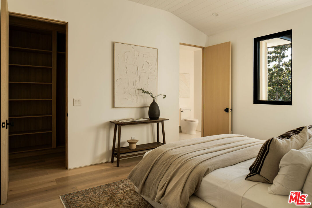 Defined by craftsmanship and intention, this new construction gated residence on Kraft Avenue presents a refined take on contemporary luxury in the heart of the Colfax Meadows. Conceived with an emphasis on proportion and materiality, this five bedroom, six bathroom home features high ceilings, natural materials, white oak floors, and custom details throughout. The composed open layout connects formal living and dining spaces to a chef's kitchen anchored by an oversize travertine island, a full suite of Thermador appliances, custom range hood, pot filler, and a service window bar for effortless entertaining. In the living room, a floor to ceiling travertine fireplace serves as a striking architectural focal point while also creating a cozy ambiance. Expansive glass pocket doors tuck away and open to a private backyard with a resort style pool and spa, built in barbecue, covered patio, and a curated outdoor space. One ensuite bedroom is thoughtfully placed on the main level, while the second level is anchored by a serene primary suite with a private balcony, spa inspired bath, and custom walk in closet, complemented by three additional bedrooms. A detached guest house featuring a sitting area, wet bar and an adjacent bath enhances the backyard experience, offering a refined space for lounging or hosting. Tech-forward features include a Control4 smart system, integrated security, cameras, and multi-zoned HVAC. Located within the Carpenter School District and moments from Ventura Boulevard and major studios, this residence balances discretion, design, and lifestyle.