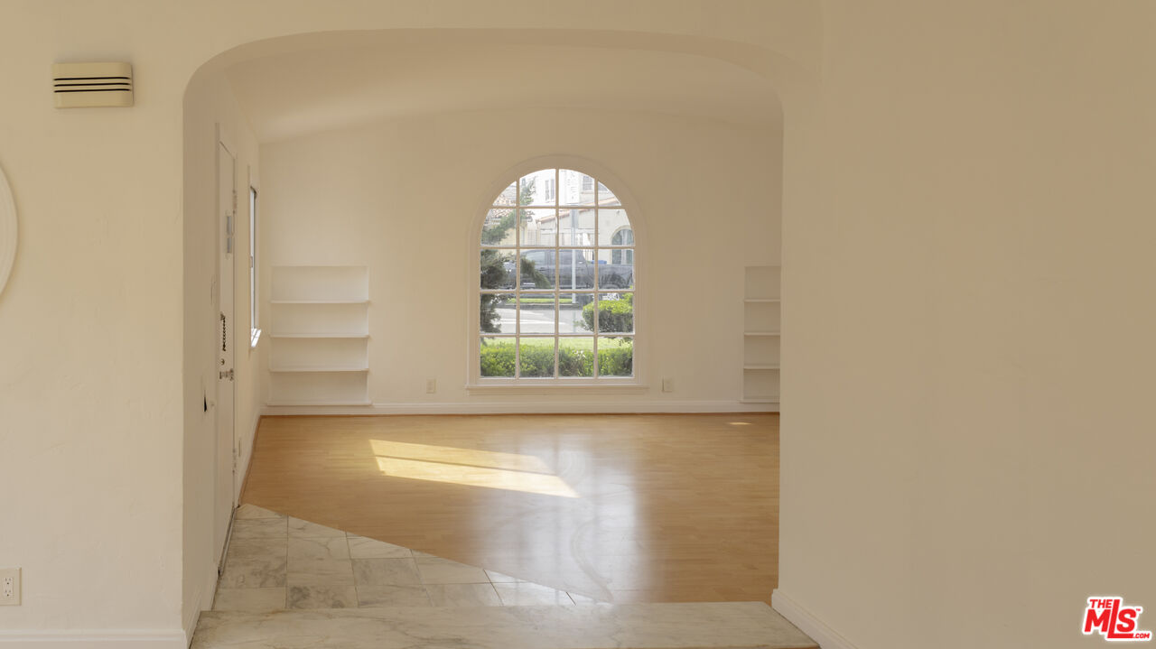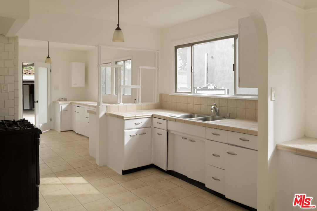 Brimming with potential and rich with original character, this 1927 Spanish bungalow offers the charm you've been searching for. Located on a picturesque street in desirable Leimert Park, this oversized 2-bedroom, 1-bath home is ready for its next steward. Lovingly held in the same family for decades, much of the home's original detail remains, thoughtfully complemented by upgrades over the years including central air and heat, fresh interior and exterior paint (2026), and select new doors. The curb appeal is undeniable. Inside, a spacious living room welcomes you with coved ceilings, a stunning central arched window flanked by built-in shelving, a cozy fireplace, and French doors that open to a private patio. A step-up formal dining room leads directly to the expansive kitchen, complete with an eat-in nook and an impressively large laundry/utility room offering abundant storage and a work sink. Both bedrooms are generously sized and situated on either side of a large vintage bathroom featuring dual sinks, a separate tub and shower, and classic tile detail. The primary bedroom is filled with natural light, includes a substantial walk-in closet, and features brand-new sliding doors that open to the backyard. Outside, a covered tiled patio provides the perfect setting for outdoor dining or relaxing, alongside a grassy yard area ideal for gardening, pets, or play. A bonus storage room off the garage offers excellent ADU potential (buyer to verify). Gated and private, this property presents an exceptional opportunity in one of Los Angeles' most beloved neighborhoods.