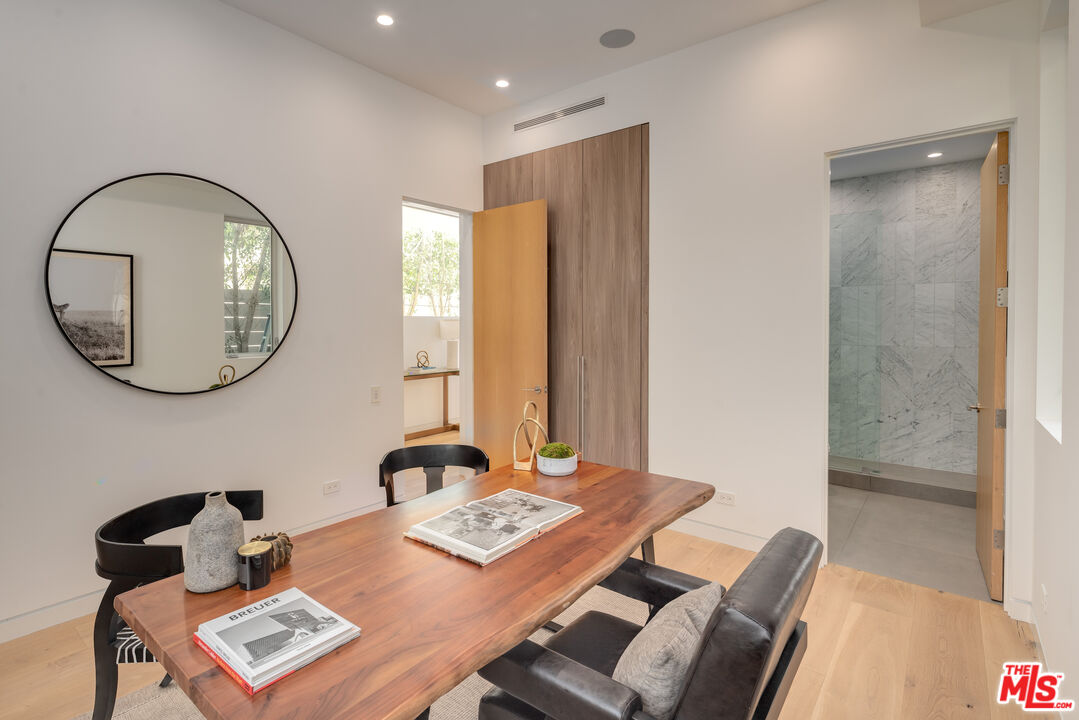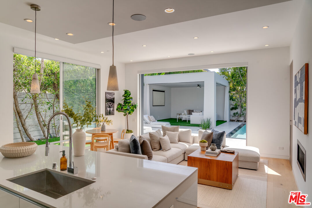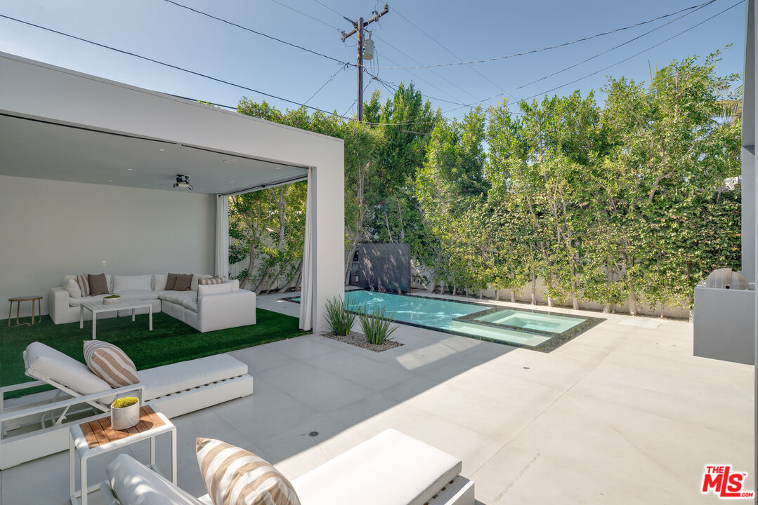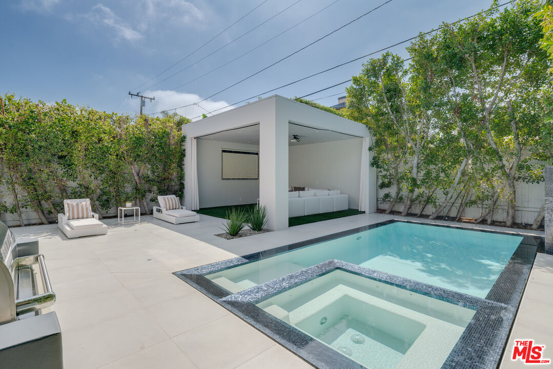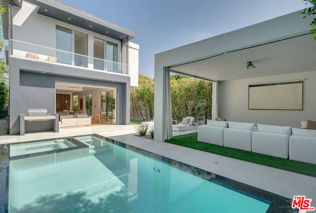 Welcome to 419 Westbourne Dr, a luxurious Organic Modern retreat nestled on a serene Cul De Sac street adjacent to Beverly Hills. This sprawling estate boasts one of the best lots and house in the area, offering unparalleled privacy and space. Impeccably designed with 11-foot ceilings throughout, this home features motorized shades in the living area and Fleetwood Pocket doors throughout, seamlessly blending indoor and outdoor living. Entertain guests with ease in the outdoor cabana, complete with a movie projector. Enjoy modern conveniences with a fully equipped alarm system, high-speed WiFi, and Crestron Smart Home System. Indulge in culinary delights with Miele appliances and a morning bar featuring a Miele Coffee machine in the primary bedroom. Relax in style with a Toto smart toilet in the primary bedroom and window window coverings throughout for added tranquility. Outdoor amenities include a BBQ area, zero-edge saltwater pool and spa, and a spacious grass area for both entertainment and children's enjoyment. Additional features include Electric Car Charging, French white oak wood flooring and security cameras throughout. Experience the epitome of luxury living in this exquisite West Hollywood oasis.