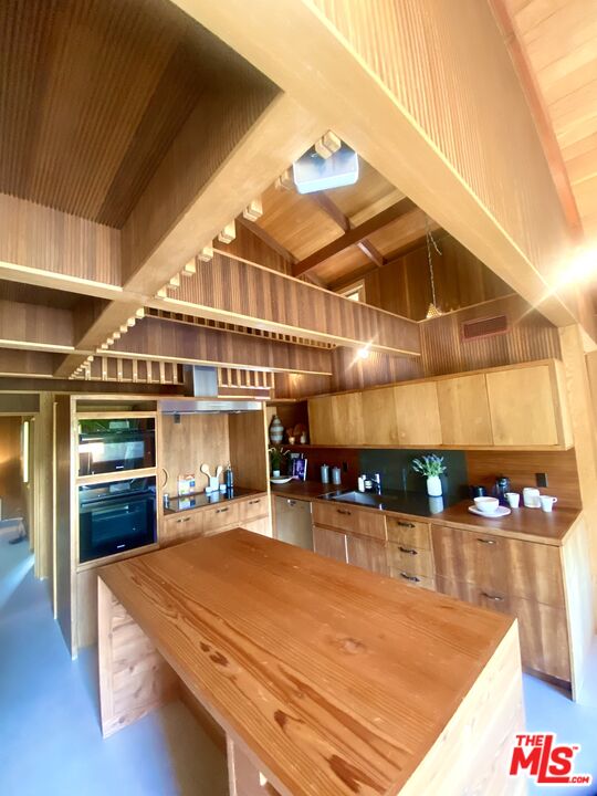 A Zen-Inspired Architectural Retreat in the Heart of Malibu. Discover one of Malibu's most distinctive architectural gems - an Asian-influenced, post-and-beam redwood and walnut sanctuary set on 10 private acres of rolling hills. This custom-designed retreat offers a truly tranquil lifestyle, where panoramic mountain views and a profound connection to nature create a serene, creative haven. The great room features soaring beamed ceilings and expansive windows that flood the home with natural light and frame the majestic landscape. The open kitchen offers Miele appliances while the primary suite is a private sanctuary with sweeping views and direct access to a large deck that wraps around the house, offering wide spaces for entertaining or lounging in the fresh air. Truly an ideal space to unwind, reflect, or ignite your next artistic endeavor, whether it be a screenplay, novel, album, or painting. A versatile loft adds flexibility as a studio, office, or additional sleeping area. Formerly restored by actor/director Vincent Gallo, the property exudes creativity and artistic energy. Outdoors, the grounds offer a graceful meditation ramada and matching pavilion bridge set over a seasonal stream; while meandering paths offer walks through your own canyon adorned with redwoods, oaks, seasonal waterfalls, and creeks. With zoning for light agriculture and equestrian use, there's room to expand, create, or cultivate. Ample parking makes entertaining and filming effortless, while proximity to Westlake Village, Malibu beaches, schools, shopping, lakes, golf, and tennis clubs ensures convenience without compromise. Owner has an expired permit for a 1,691sf art barn. Prop is not in Coastal Commission. Many possibilities abound.