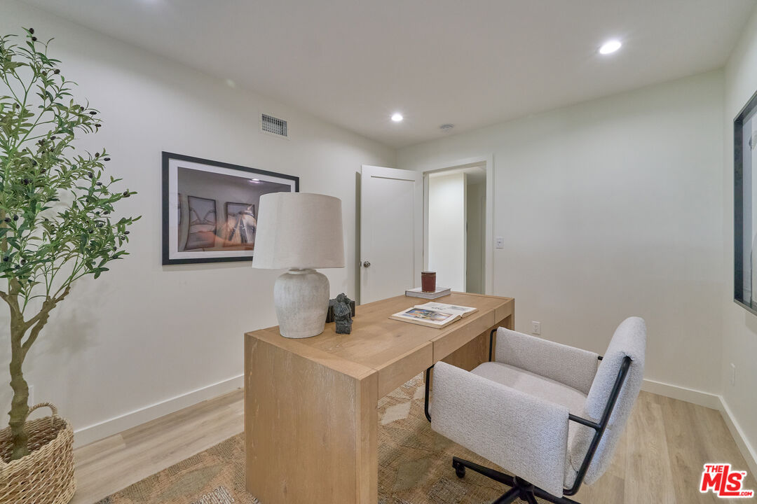 Completely reimagined and impeccably upgraded, this exquisite residence is nestled in the highly coveted Toluca Woods neighborhood. The show-stopping chef's kitchen features a statement island with integrated sink, custom frameless shaker cabinetry, and elegant Carrera quartz countertops, complemented by a full suite of top-of-the-line appliances including a counter-depth, three-door Wi-Fi enabled refrigerator, dishwasher, range, microwave, and dedicated wine refrigerator. Sophisticated white oak flooring flows seamlessly throughout the home, enhanced by newer windows and designer recessed lighting. The expansive primary suite offers a true retreat, highlighted by dual skylights and a private spa-inspired bath. For added convenience, a washer and dryer are discreetly located within a nearby closet. The attached garage has been tastefully updated with a door, fresh drywall, and sleek epoxy flooring. Ideally positioned on the border of Burbank and Toluca Lake, you're just moments from premier dining, upscale boutiques, and entertainment. Warner Bros., Disney Studios, and Warner Bros. Ranch are all just a short drive away. Placing the very best of the industry and lifestyle at your doorstep.