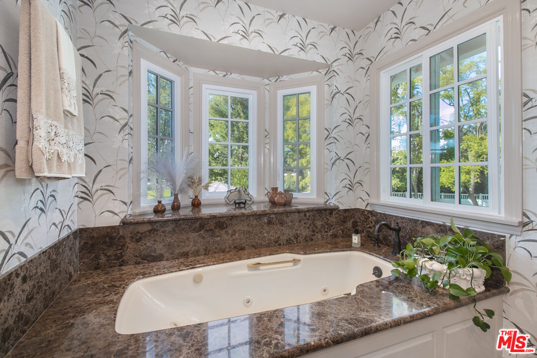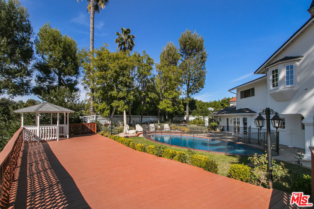Imagine waking up every morning to stunning views of a lush golf course and rolling hills. This warm, bright, two-story Colonial has been fully updated and is situated on a peaceful cul-de-sac in one of Tarzana's most coveted locations. First time on the market in 40 years, it offers a dramatic entryway with soaring ceilings, elegant living room, formal dining room, cozy den, and a spacious chef's kitchen with breakfast area. Upstairs, you'll find four generous bedrooms, including a luxurious primary suite with sweeping views of the golf course and verdant hills, reminiscent of Europe. The expansive backyard, also overlooking the fairway, features a beautiful pool, deck, gazebo and carefully landscaped gardens with fruit trees and over 100 rose bushes--perfect for entertaining and outdoor relaxation. A rare opportunity to own a move-in-ready home with breathtaking views and timeless charm in a truly spectacular setting.