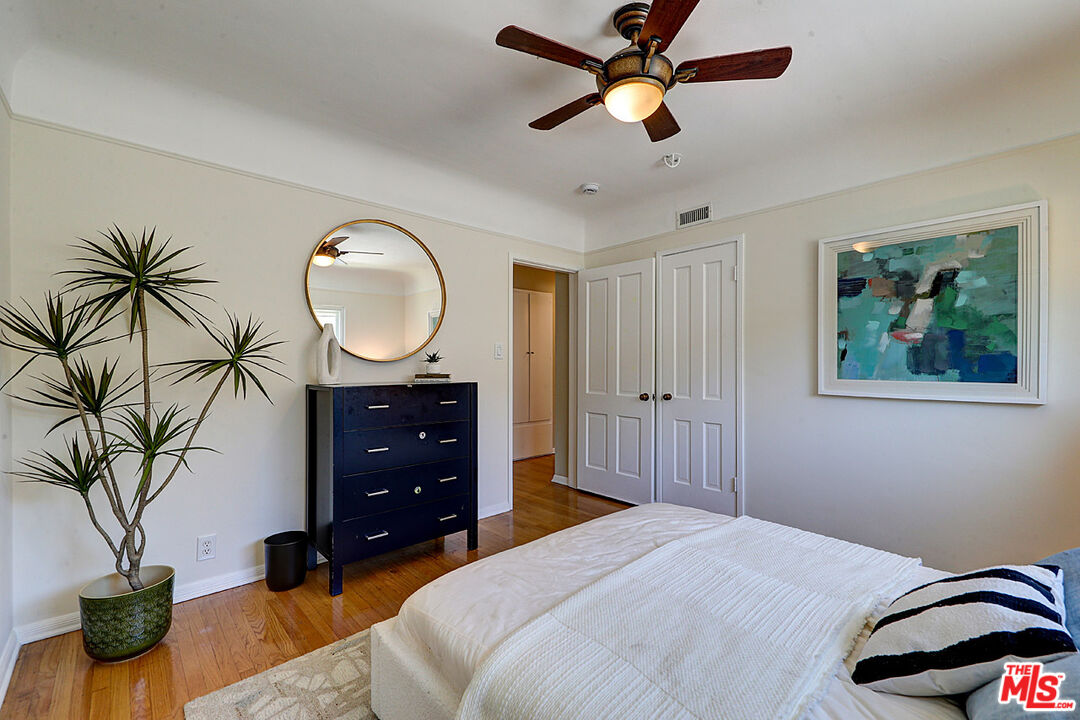 Nestled in the heart of coveted Carlson Park, one of Culver City's most sought-after enclaves, this beautifully maintained 3-bedroom, 2-bath home blends timeless character with everyday comfort. A classic bay window and stacked-stone facade make for charming curb appeal, while inside, gleaming wood floors, elegant crown molding, and a fireplace framed by original stained-glass windows give the light-filled living room a warmth that's hard to replicate. The refreshed kitchen features stainless steel appliances and glass-front cabinetry, opening directly to both the driveway and a private, fully fenced backyard. This true entertainer's retreat features mature foliage, lush landscaping, and plenty of room to gather. Tucked at the rear of the home for peace and quiet, the primary suite is a standout, offering exceptional storage with a full walk-in closet plus two built-in wardrobes, serene backyard views, and a dual-vanity en-suite with separate tub and shower. A detached two-car garage and bonus storage/utility room with laundry and extra refrigerator complete the offering. And in a city defined by traffic, you're just blocks from downtown Culver City's celebrated dining, boutique shopping, theaters, and Sony Studios. A rare car-optional lifestyle in the heart of the Westside.