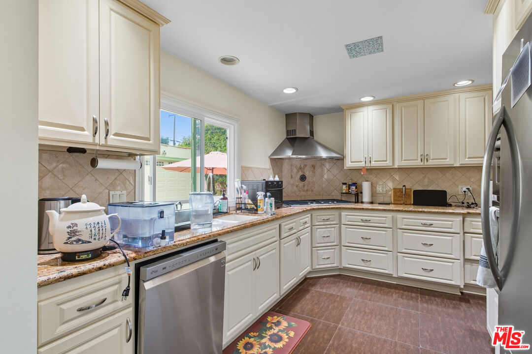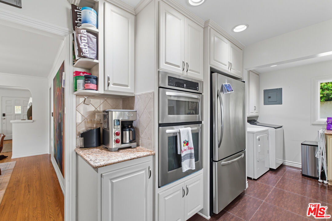 Charming Spanish Gem North of Montana! Beautifully maintained and full of character, this desirable Spanish-style home offers timeless appeal in one of Santa Monica's most sought-after neighborhoods. Featuring two separate 2-car garages, including an expansive 983 sq. ft. detached garage, this property combines classic architecture with exceptional functionality and versatility. Inside, gleaming hardwood floors flow throughout a flexible floor plan that can easily function as four bedrooms or as three bedrooms plus a convertible office/den. The inviting living room showcases an elegant Batchelder fireplace, while the arched, covered front porch adds a touch of timeless charm. The updated kitchen features sleek granite countertops, new appliances, and generous storage perfect for everyday living and entertaining alike. A large grassy backyard and refurbished patio areas provide the ideal setting for outdoor gatherings or quiet relaxation. Situated just blocks from Roosevelt Elementary School and Montana Avenue's premier shops and cafes, this home also presents an extraordinary opportunity to build your dream residence, as the lot is approximately 57% underbuilt, offering tremendous potential for expansion or redevelopment.