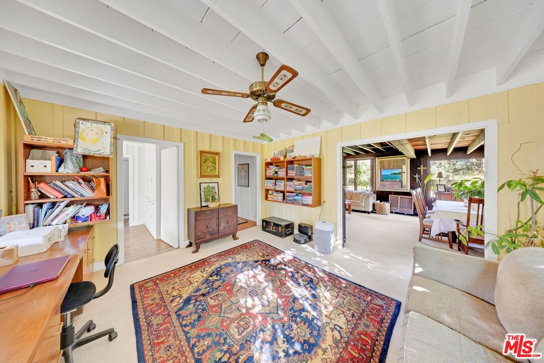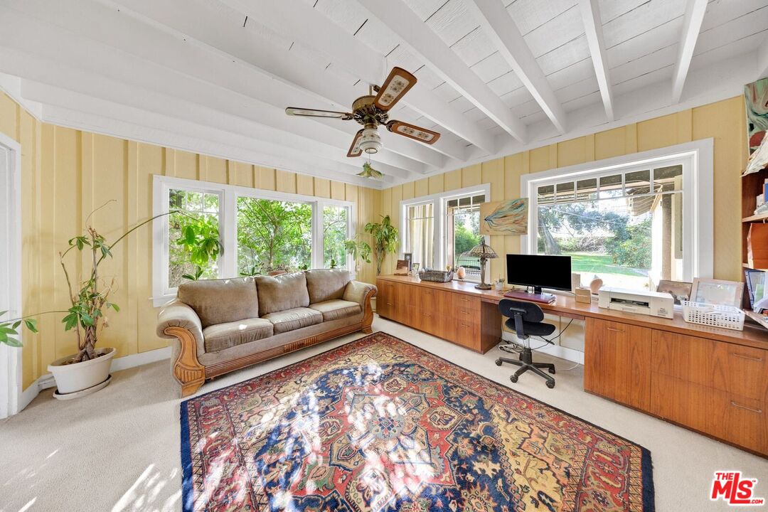 Welcome to this beautiful rustic style home, on the highly sought after street across from the San Gabriel Country Club. The property sits on a wide lot with 24,017 sq. ft. This 2-story home is brimming with rustic character and surrounded by peaceful natural beauty. Property consists of an inviting warm living room, combined with dining area and fireplace with high beam ceilings. Ample space for entertaining large gatherings, surrounded with large windows that fill the space with natural light, and connects the indoors and outdoors. Great family room that can be used as an office. Kitchen with tile counters, plenty of storage cabinets and a walk-in pantry or storage room. Enjoy having breakfast or cup of tea in the cozy dining room that overlooks the backyard. There is a 3/4 bath, washer and dryer area conveniently located on the first floor. Upstairs, you will find a spacious landing with cabinets, 4 cabin like spacious bedrooms and 1 full bath. The entertainer's expansive rear yard surrounded with lush plantings and mature trees, offers privacy and space to explore. Plenty of room to build swimming pool or ADU. There is a barn in the backyard that is being used for storage and studio. Several parking spaces are available onsite. While the property could use updating, this home has a vintage-inspired feel and offers tranquility and a brake from urban life. Built for comfort and enjoying the outdoors. Must see!