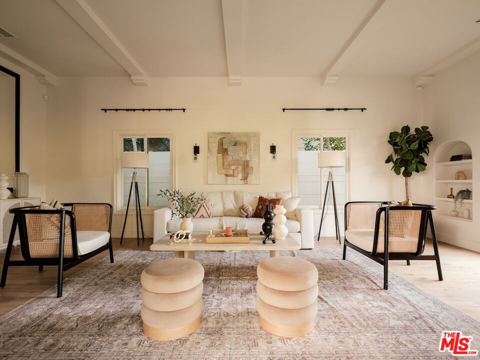 Welcome to 430 N Flores Street--"Flores," meaning flowers a fitting name for this exquisitely reimagined Spanish-modern retreat in the heart of Beverly Grove. Hidden behind a gated entry and soaring hedges, this serene haven instantly transports you to Montecito, where timeless 1930s architecture meets refined contemporary living. Coved and beamed ceilings, a sweeping picture window, and a classic fireplace anchor the home's romantic character, enhanced by a Crestron smart system offering centralized control of lighting, temperature, video security, and sound. The expansive chef's kitchen--complete with Thermador paneled appliances, an inviting eat-in island, and a wine fridge--flows effortlessly into a formal dining room ideal for intimate dinners or lively celebrations. Three spacious bedrooms, three beautifully appointed bathrooms, and a one-bedroom ADU embrace the quintessential indoor-outdoor California lifestyle. Off the living room, a private courtyard with a rare outdoor wood-burning fireplace creates a magical extension of the home--perfect for evenings under the stars. The enchanting backyard continues with lush landscaping, a sparkling pool and a wrapping Ipe deck designed for sun-soaked afternoons, al fresco dining, or unwinding in one of the many tranquil nooks. Situated on a quiet, tree-lined street, the property feels like a secluded oasis while offering exceptional walkability. You're moments from Melrose Place, West Hollywood, The Grove, the Farmers Market, the Beverly Center, and premier dining and boutique shopping. Whole Foods, Erewhon, and Trader Joe's are close by, and top local schools--including The Center for Early Education and Rosewood STEM Magnet--are just a short stroll away. 430 N Flores Street is more than a home--it's a lifestyle, a statement, and a muv toward everyday luxury in one of Los Angeles' most sought-after neighborhoods.