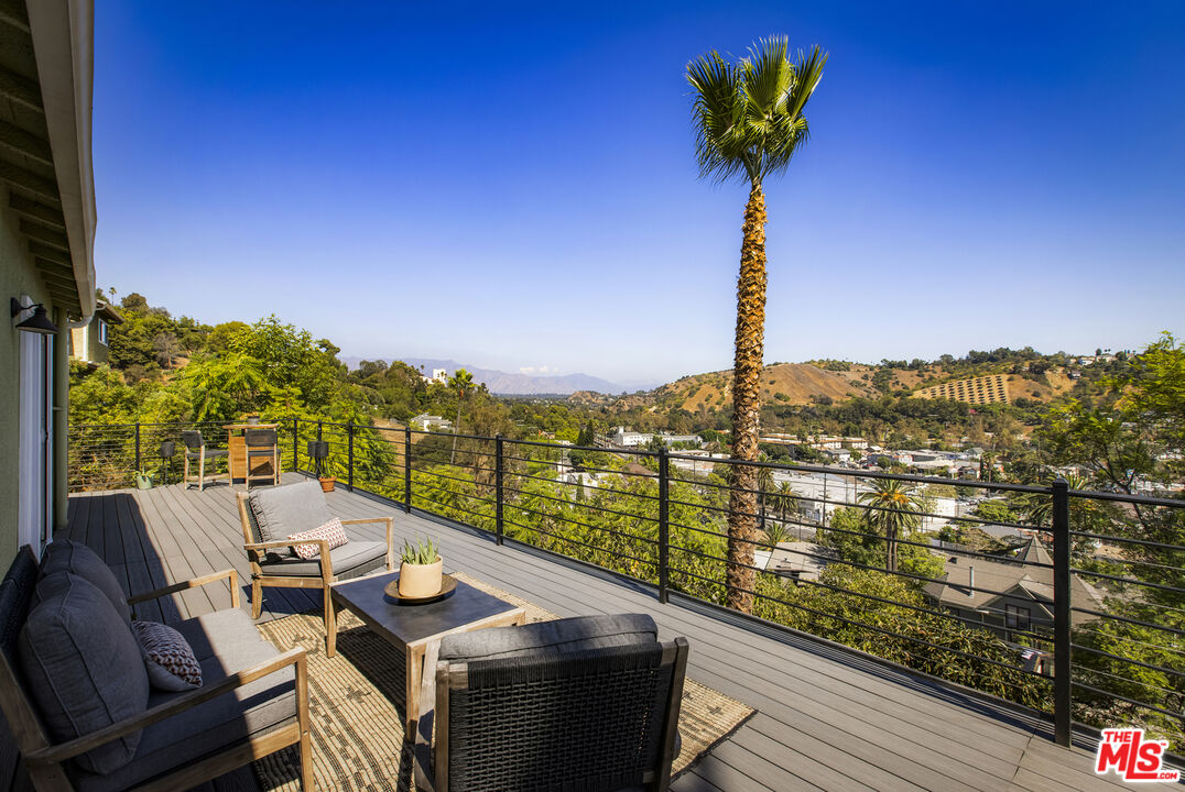 Description: Stunning, unobstructed, jetliner views in Mount Washington! Set back on a tranquil street, this inviting two-bedroom, one-and-a-half-bath retreat blends warmth, comfort, and indoor-outdoor living. Past the white picket fence, you'll find a bright and airy living room straight ahead, with the kitchen just off to the left. Both spaces open to the home's standout feature: a remarkable panoramic deck. Designed for entertaining, relaxing, or simply taking in the serene hillside setting, the deck offers endless opportunities to enjoy Southern California living at its best. The spacious primary bedroom also opens directly onto the deck, creating a private retreat with gorgeous views. Sitting on a generous 7,200 sq. ft. lot, the property provides ample room for expansion, gardening, or simply enjoying the extra space. A mature fruiting Hachiya Persimmon tree provides shade and a delicious harvest in October! Additional highlights include a one-car garage plus an extra parking pad. Located within the sought-after Mount Washington Elementary School District, the home is just a short stroll to Obet & Del's Coffee and moments from the vibrant dining, shopping, and cultural scene of Highland Park. This hillside getaway combines peace and privacy with the convenience of city living; an ideal balance for your next chapter. Show all description