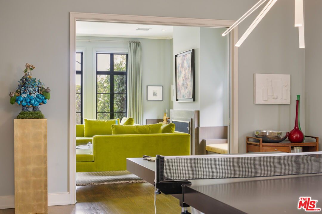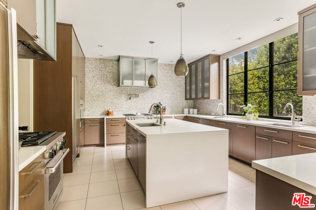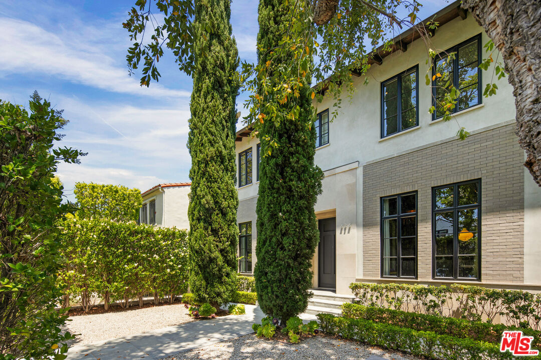 Originally designed by William Hefner and subsequently reimagined by renowned interior designer Sally Breer, this light-filled contemporary Mediterranean residence delivers modern amenities while retaining the architectural details and pedigree of Hancock Park. Hefner's style is known for its classic proportions and elegance, and that's accomplished here in this 7,500 square foot chic smart-home. It's modern, yet traditional and lively. Ideal for the display of a collection of art, the main level features an iconic study, formal living and dining rooms, all of which converge upon a central outdoor courtyard. The family room and breakfast nook spill outside to the salt-water pool and outdoor dining area. The kitchen is adorned with three dishwashers, three ovens, and two ranges. A separate butler's kitchen accommodates the Kosher chef or can easily be converted to wine storage. An elevator ride upstairs leads to five generously sized bedrooms, each with their own ensuite bathroom and walk-in closet. The primary suite is decorated with vaulted ceilings, a balcony, and has a jetted tub, giant walk-in closet, and dual-vanity. The lower level consists of a large home-theater, multiple flex spaces and storage areas, an office, gym, and automobile turntable which accommodates parking for three cars. Other amenities include: Six HVAC zones, Missoni carpet and wallpaper, mature landscaping, fiber-optic and CCTV wiring, roman shades, black-out curtains, water-softening, and smart lighting. All this, only minutes to Larchmont Village, the Sycamore District, and world class art galleries, dining and shopping. Can be delivered furnished.