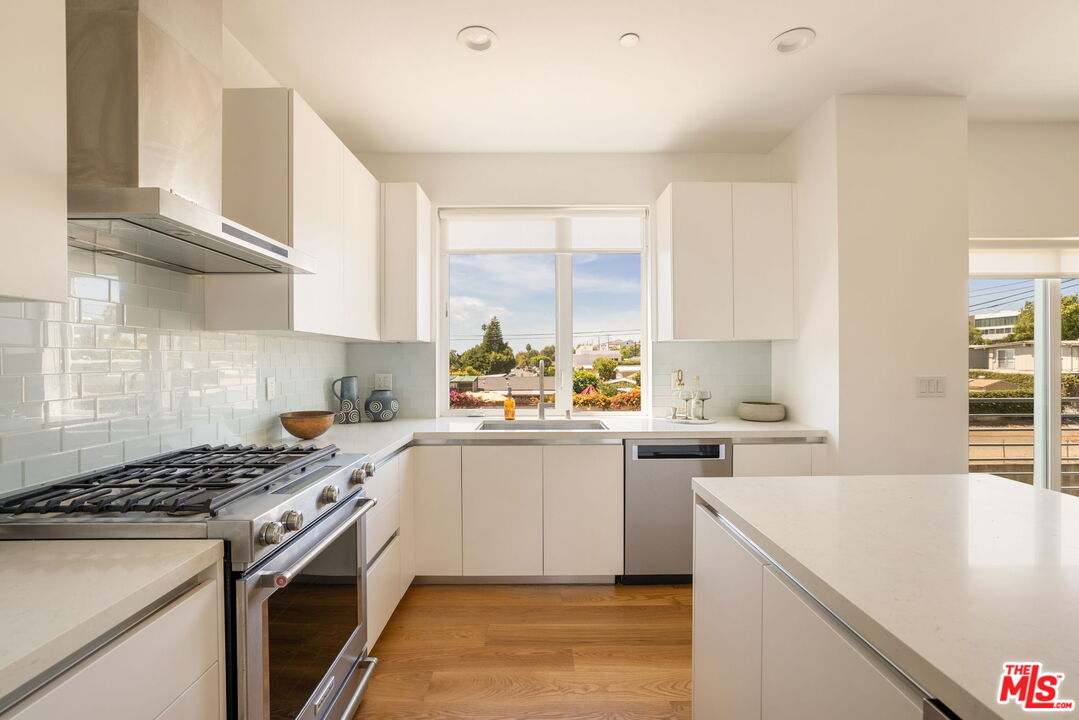 An architectural sanctuary on a hidden cul-de-sac, this spacious single-family home, of over 2,000-square feet, has four bedrooms plus three-and-a half baths with an attached two-car garage. Abundant natural light dances across the spaces with dynamic city views out of every side of the home. Downstairs is perfect for a home office or in-law/teenager suite complete with a private ground floor garden and patio space. On the second level, the open eat-in kitchen, with stainless steel appliances, plus a gracious dining and living area allows for seamless entertaining and has an outdoor deck for grilling. The third floor master suite has an oversized-closet and generous master bathroom. Two more bedrooms with a shared bath and a large soaking tub, plus laundry, complete the top floor. With wide plank oak hardwood floors throughout, abundant storage, central air and heat, energy-efficient tankless water heater, a ring home security system, plus pre-wired for solar and electric car charging, this urban oasis, just minutes to Culver City, Venice, Playa Vista, and Marina del Rey with easy access to 405 freeway, has the highest quality, best value and a unique community not available anywhere on the westside of Los Angeles. BY APPOINTMENT ONLY.