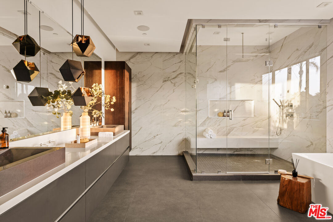 A sophisticated fusion of modern architecture and serene luxury, this newer construction contemporary home features 5 en-suite bedrooms, soaring 12-24-foot ceilings, dramatic floor-to-ceiling pocket doors, and a seamless indoor-outdoor flow in the heart of prime Studio City. The expansive open floor plan creates a sunlit atmosphere with seamless indoor-outdoor connectivity. At the heart of the home lies a chef's kitchen outfitted with custom cabinetry, premium appliances, and an oversized center island ideal for everyday living and effortless entertaining. Italian porcelain tile, bespoke lighting, and carefully curated finishes lend warmth and elegance throughout. The living areas flow into a private backyard retreat featuring a sparkling heated pool, outdoor kitchen, covered dining area, and a striking 14-foot water wall offering a true sense of tranquility and escape. Additional amenities include a custom home theater and a glass-enclosed wine display, bringing a refined lifestyle touch to the residence. Upstairs, four ensuite bedrooms are centered around a bright, open landing, including the luxurious primary suite with its own fireplace, spa-inspired bathroom, generous walk-in closet, and a private balcony overlooking the lush, Zen-like grounds. Featuring a large flat lot, the backyard showcases a zero-edge pool, outdoor kitchen, and turfed lawn, perfect for entertaining and lounging. The 2-car garage has been conveniently converted into a state-of-the-art gym, perfect for fitness enthusiasts. Ideally located just moments from Tujunga Village and Studio City's most beloved boutiques and cafes, this thoughtfully designed home embodies the essence of elevated California living.