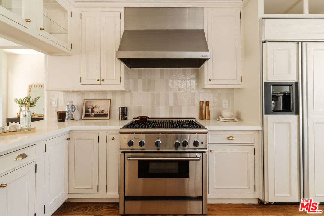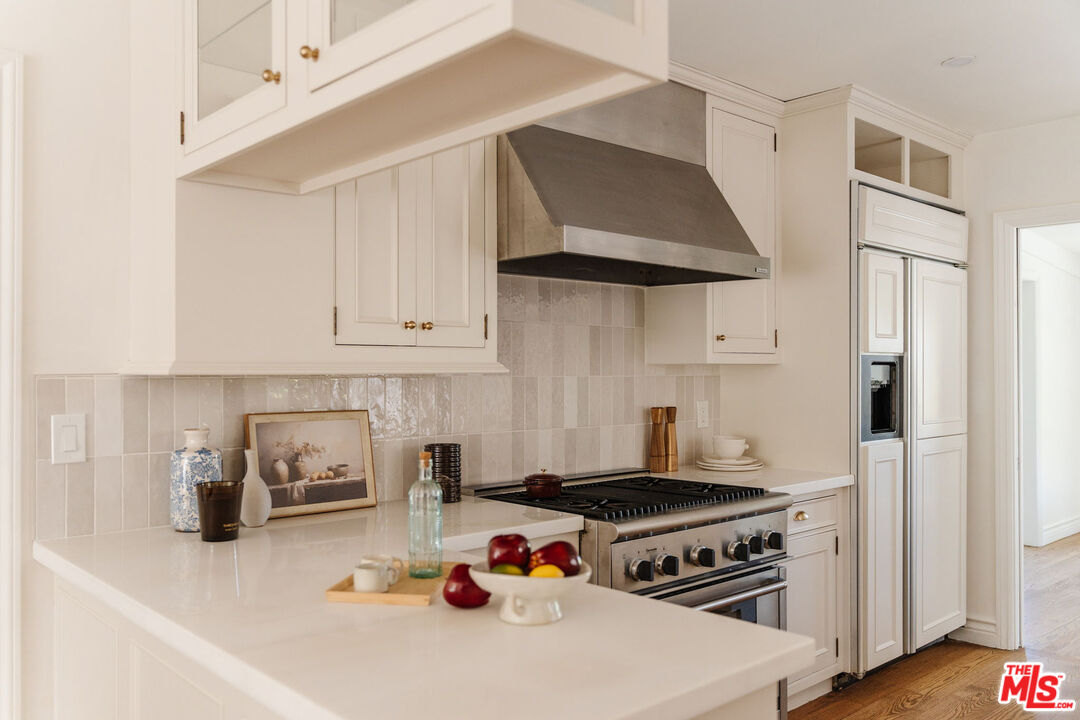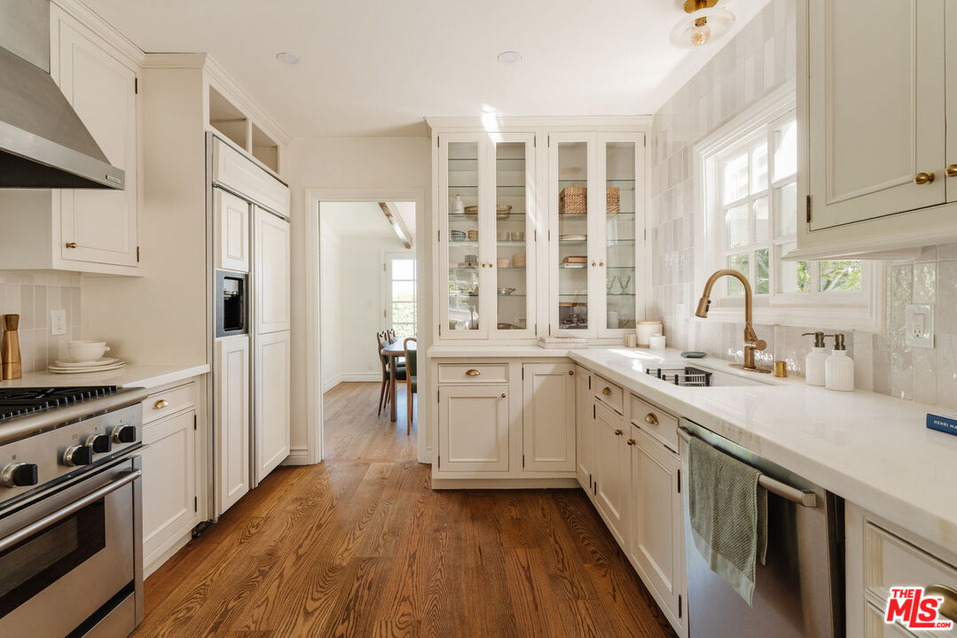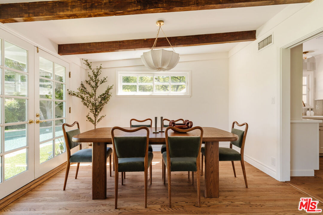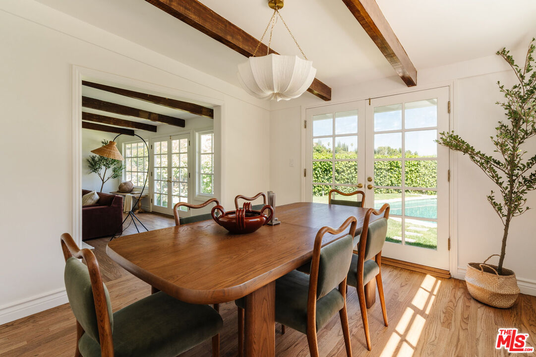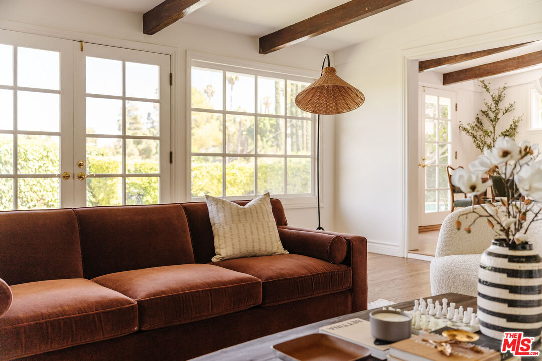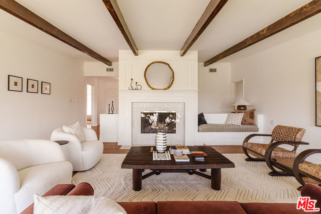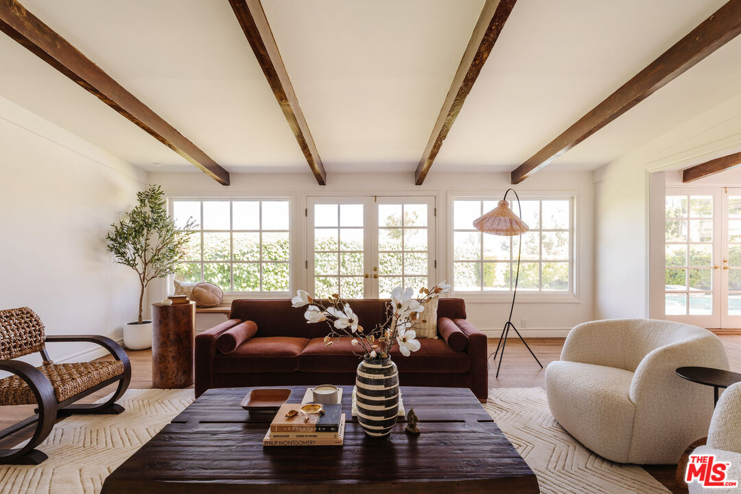 Recently remodeled and set high in the hills, this character-rich Encino residence sits on an expansive 18,639 sq ft lot, pairing elevated views with a pool and spa and offering a sense of privacy that feels removed while still just moments from Ventura Boulevard. Positioned beyond a long, tree-lined drive, the property unfolds through layers of mature landscaping, creating a sense of privacy that's increasingly hard to find.The approach is quiet and deliberate. Ivy climbs across the exterior, giving the home a sense of permanence, while an arched garden entry draws you inward. A brick pathway curves through greenery, revealing the home step by step. Inside, the living room is designed as the main gathering space, where exposed beams bring warmth overhead and the fireplace naturally centers the room. There's enough space to spread out, while still feeling connected, whether it's a quiet evening in or a full house of guests. Light moves through from multiple directions, keeping the space bright without sacrificing privacy, with views of greenery always in sight. The dining area sits just off the living room, positioned alongside French doors that open directly to the yard, making it easy to move between indoor meals and outdoor gatherings. The kitchen is anchored by a large peninsula that works as both prep space and a casual place to sit, with full-height cabinetry and integrated appliances keeping everything organized and within reach. The layout is efficient and practical, with a clear connection back to both the dining area and the outdoor spaces. A second living room offers a more relaxed, tucked-away setting, ideal for movie nights, reading, or a quieter place to unwind. Built-in shelving and cabinetry provide storage, while the fireplace adds a sense of comfort and separation from the main living areas. The bedrooms are arranged to give each space a sense of privacy from the main entertaining areas. One can easily function as a home office or creative space, while another works well for guests or shared living. Each room gets a comfortable amount of natural light and feels removed enough to serve as a retreat when needed. The bathrooms are designed for everyday use, with a mix of classic and updated finishes that feel straightforward and functional. The primary suite offers a calm, comfortable setting with enough space to settle in, paired with a bathroom that supports daily routines without excess. The backyard extends the living experience outdoors. A covered patio with a built-in ceiling fan creates a natural setting for dining or long afternoons outside, anchored by a barbecue and prep area. The pool and spa sit within a stone terrace, surrounded by mature landscaping that adds privacy and makes the space feel established. Multiple seating areas are spread throughout the yard, giving you options to gather, relax, or step away for a quieter moment. From the edges of the property, elevated views of treetops and distant hills come into view, reinforcing the sense of being tucked into the hillside. Located just moments from Ventura Boulevard, the home offers easy access to local favorites including Davenport's Restaurant, Larsen's Steakhouse, and Mora Italiano, along with coffee spots like Laidrey Coffee Roasters and Alfred Coffee, and everyday essentials at Whole Foods Market, Trader Joe's, and Gelson's Market.
