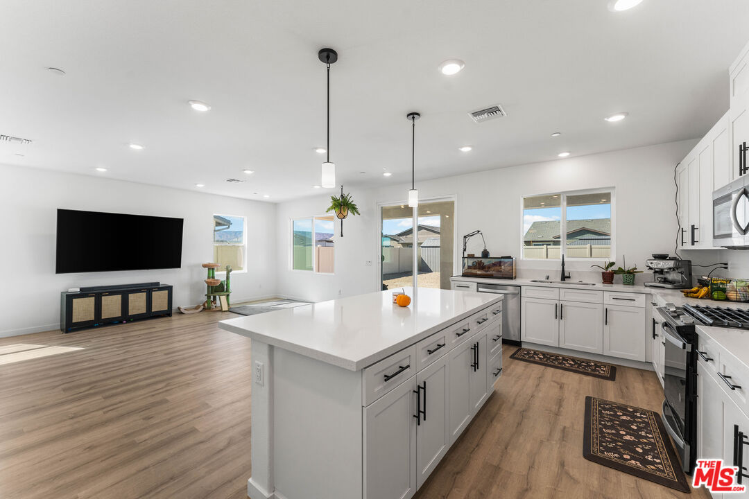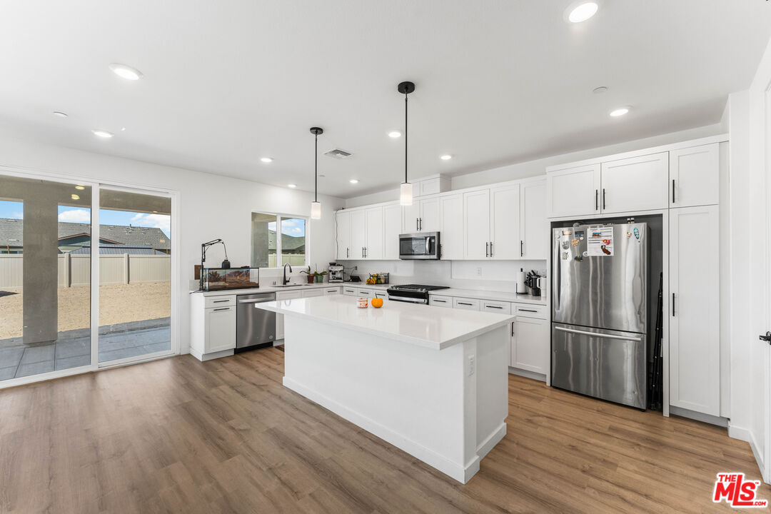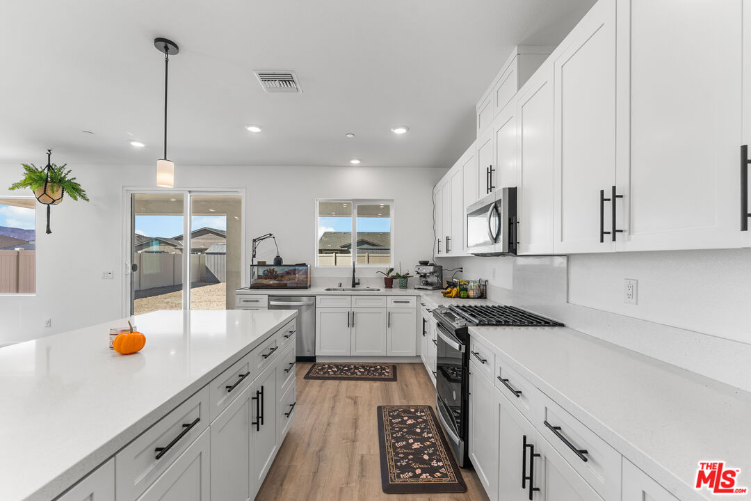 Welcome to this stunning new construction home built in 2024, located in one of West Lancaster's most desirable neighborhoods! This modern single-story residence offers 3 spacious bedrooms, 2 bathrooms, and approximately 1,728 sq ft of open-concept living space.Step inside to an inviting layout featuring a bright and airy great room, perfect for entertaining or family gatherings. The kitchen showcases modern cabinetry, a large center island, stainless steel appliances, and a walk-in pantry. The primary suite offers a private retreat with a generous walk-in closet and dual-sink vanity.Additional highlights include energy-efficient features, a tankless water heater, smart home technology, and a two-car garage. Enjoy low-maintenance desert landscaping and a peaceful community with nearby parks, schools, and easy freeway access.Experience the perfect combination of comfort, style, and convenience this 2024 home is move-in ready and waiting for its new owner!