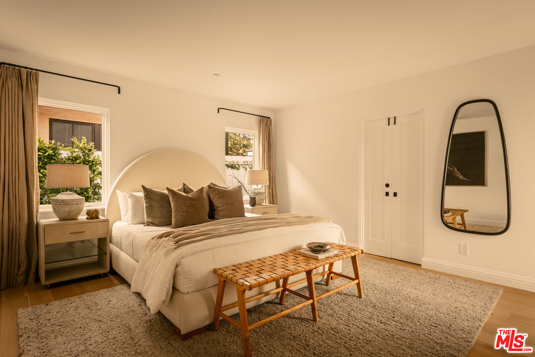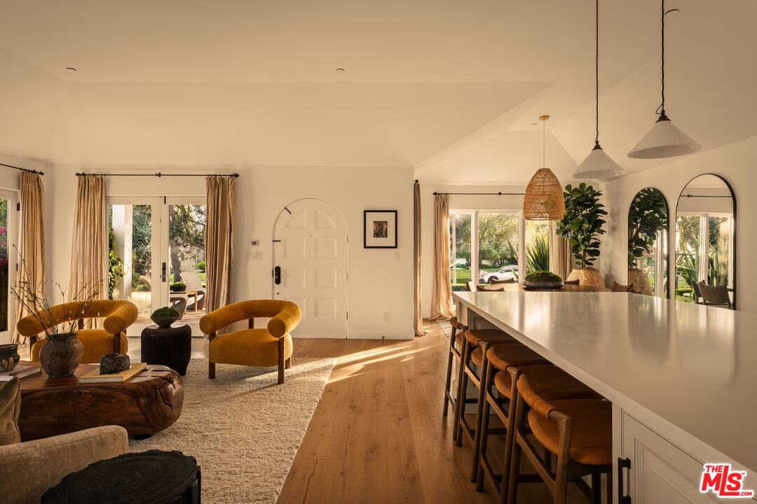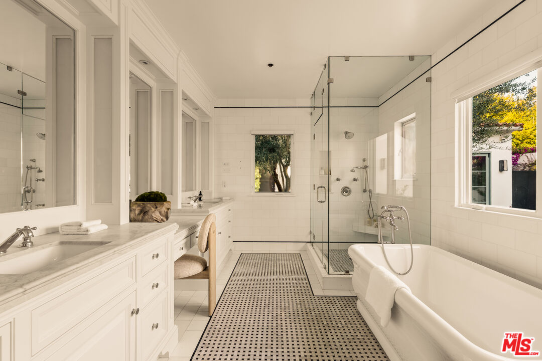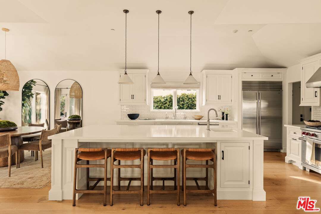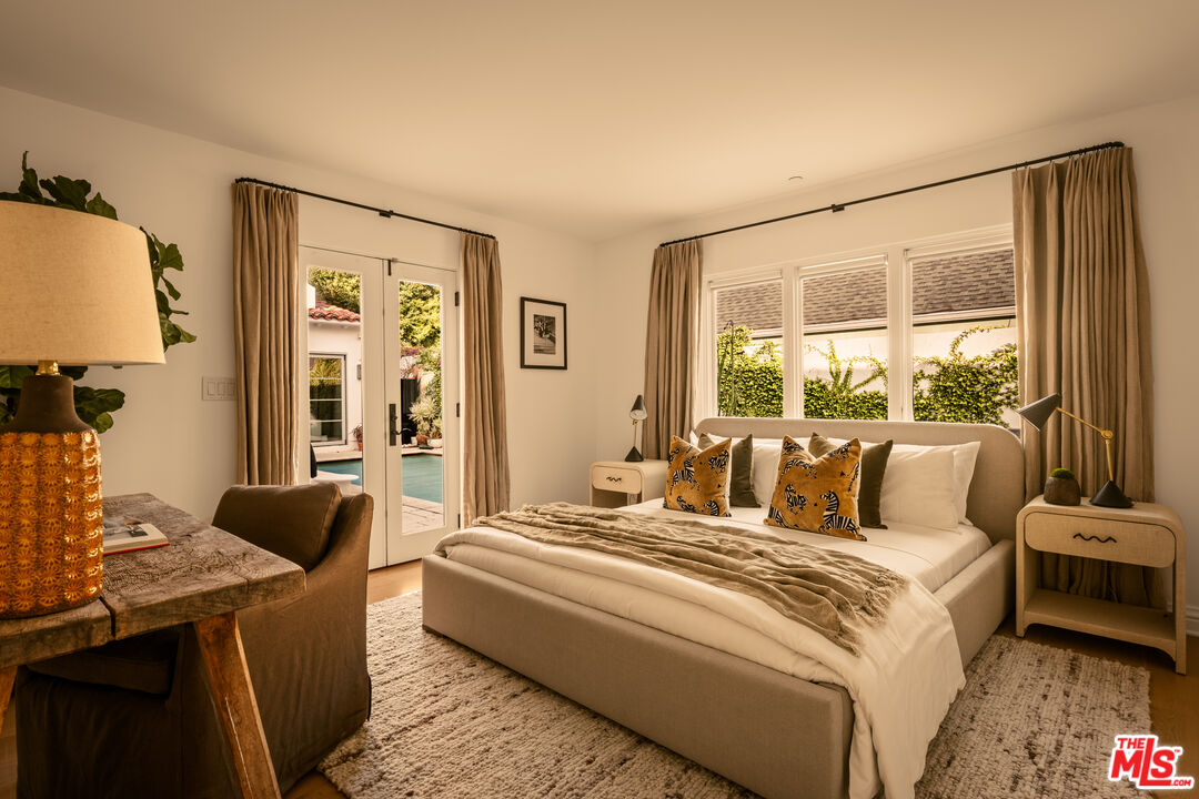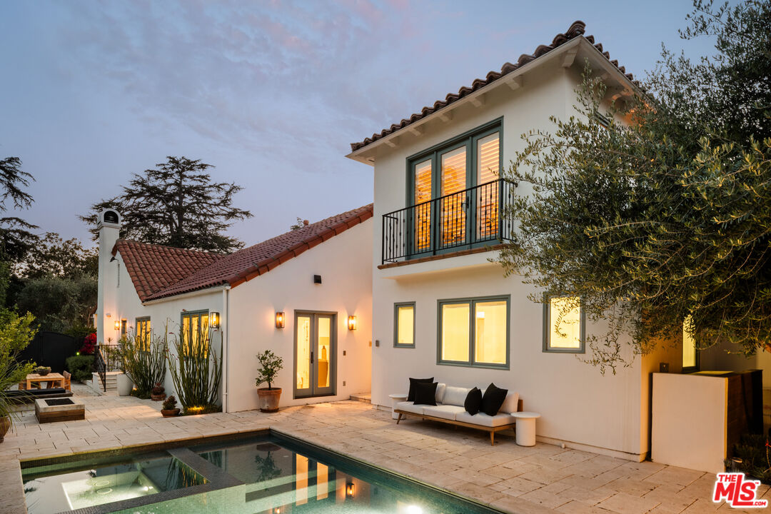 Nestled in the coveted North of Montana neighborhood, this beautifully reimagined Contemporary Spanish residence blends timeless character with a fresh, refined aesthetic. Warm, light filled interiors define the open concept living spaces, where a thoughtfully designed kitchen, anchored by an expansive island ideal for casual dining and gathering, flows seamlessly into the family room and intimate dining area. The main residence offers 3 luminous bedrooms and 2.5 baths, all situated on a single level. A loft above the primary suite provides a peaceful, elevated retreat, ideal for a private office or reading lounge, complete with its own balcony. Outdoors, a sun-drenched setting unfolds with a hot tub and pool featuring swim-in-place jet technology, a built-in fire feature, and a dining terrace conveniently located just off the kitchen, creating effortless indoor-outdoor flow. A detached guest house adds exceptional versatility, well suited for guests, a private office, or a studio. Above the guest house, an additional upper-level bonus space offers flexibility for a gym, creative workspace, or other adaptive use. Ideally located just moments from Montana Avenue's boutiques, cafes, and dining, and in close proximity to Palisades Park and Santa Monica State Beach, this home offers effortless coastal living within one of Santa Monica's most sought-after neighborhoods and its acclaimed school district.