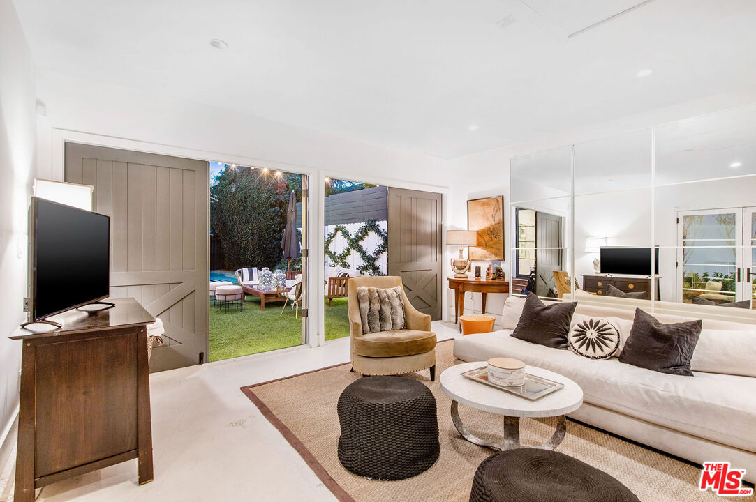 Beautifully reimagined 1940s East Coast traditional residence, meticulously expanded and finished with an eye for both craftsmanship and modern sophistication. The heart of the home is an open-concept living and dining area, anchored by multiple living spaces that offer effortless flow for relaxation and entertaining. A custom kitchen, appointed with top-tier finishes including Viking Pro Line appliances and artisan fixtures, seamlessly integrates with the communal spaces, making it perfect for both casual gatherings and formal occasions. Each of the three bedrooms boasts a spa-inspired en-suite bath, embodying tranquility and elevated design. The primary suite is a true retreat, featuring an expansive walk-in closet and a custom barn door that leads to a sumptuous bath. Floor-to-ceiling, aluminum-clad Lincoln doors open to reveal direct access to the lush backyard. Outdoors, the property transforms into a private oasis framed by high hedges. A resort-style pool with a jacuzzi spa serves as the centerpiece, complemented by a fire pit lounge and ample seating areas designed for alfresco entertaining. The detached finished garageaccessed via bespoke custom carriage doorsoffers flexible use as a studio, office, or guest suite.Additional design highlights include curated fixtures from Rejuvenation Hardware, SchoolHouse Electric, and Emtek, as well as furnishings valued over $100,000, making this turnkey offering truly one-of-a-kind. Situated within the award-winning Colfax Charter School district, this residence is an exquisite blend of character, privacy, and modern luxury.