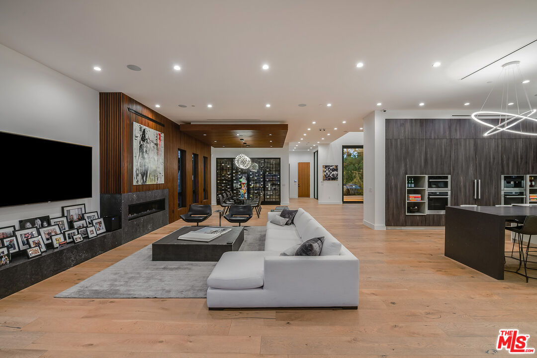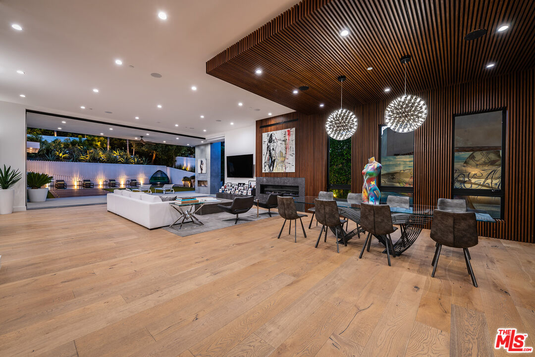 A truly irreplaceable estate, 4530 Libbit Avenue is a masterclass in art, architecture, and elevated living, set behind gates on a sprawling 20,000 square foot private lot south of the Boulevard. Encompassing approximately 8,000 square feet of refined interiors, this one of a kind residence offers six bedrooms plus a dedicated office and seven bathrooms, curated for those who demand rarity, scale, and distinction. From the moment you arrive, the home announces itself with a dramatic grand glass front door and soaring ceilings that flood the space with natural light. Upon entry, guests are greeted by a monumental hand painted mural by Christina Angelina, setting a museum level tone that continues throughout the home. The formal dining room is equally unforgettable, framed by expansive windows showcasing a striking mural by renowned street artist Jules Muck, seamlessly blending fine art with everyday living.Wide plank white oak floors flow through an open, airy layout designed for both grand entertaining and intimate living. The gourmet kitchen is a showpiece, featuring Miele appliances, dual ovens, a walk in pantry, espresso and coffee bar, abundant custom storage, and an oversized island with generous seating, all overlooking the backyard through a large picture window that brings the outdoors in. Designed for modern luxury living, the home also offers a private movie theater, expansive patios, and effortless indoor outdoor flow throughout. The primary suite is a sanctuary of its own, complete with a dual sided fireplace opening to a private patio overlooking the grounds, a massive custom closet, and a spa caliber bath unlike any other, featuring a large round soaking tub, separate his and her water closets, an all glass oversized shower, and a private sauna. The resort style backyard is an entertainer's dream, offering a waterfall pool and spa, fire pit lounge, large cabana, outdoor kitchen with built in table, fireplace, and lush mature landscaping that creates a true sense of seclusion and tranquility. Additional highlights include a three car garage, expansive gated driveway accommodating multiple vehicles, and a Control4 smart home system with 17 security cameras for advanced comfort and peace of mind. Ideally located close to premier shops and restaurants and within the coveted Lanai Road Elementary School district, this is a rare opportunity to own an architectural and artistic statement in one of Encino's most desirable enclaves. This is not just a home, it is a destination, a gallery, and a lifestyle, all in one.