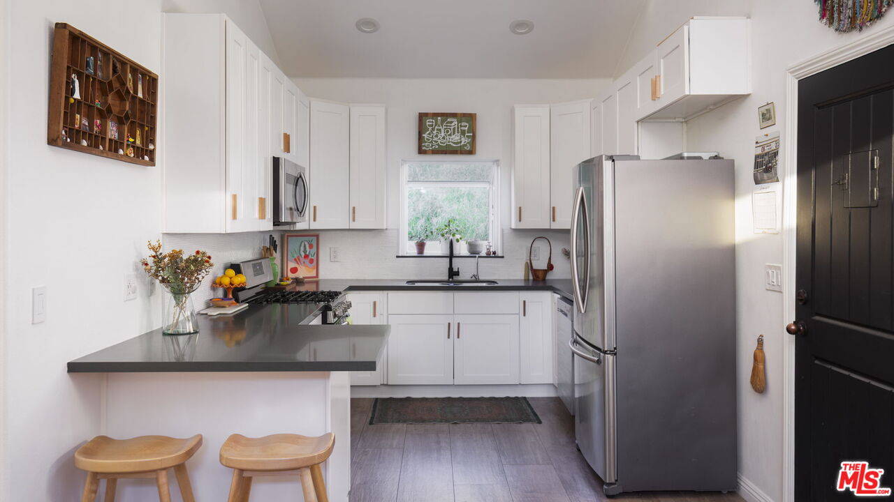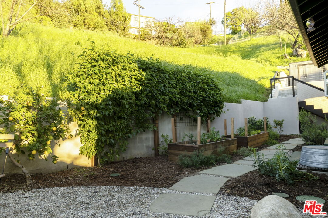El Sereno hillside bungalow with sustainable features and views. Nestled in the hills of El Sereno, this re-imagined bungalow is the perfect retreat from the bustling city. When you arrive, you feel the privacy and tranquility of the hills surrounding you. Upon entering the home, you are greeted by a high pitched ceiling that expands the space and makes it feel light and airy. The layout is efficient and well laid out, feeling larger than the actual square footage. Both bathrooms have been updated with newer tile and finishes. From the primary bedroom, there are expansive sliding doors opening to a well curated garden. Outside, there are many pockets to enjoy the California sun, including a large front patio area, perfect for dining al fresco, and a quiet moment in the rear garden overlooking the hills. The home is perfect for an ecocentric lifestyle with paid off solar, a greywater system, edible garden with raised garden beds, Passion Fruit, Orange, Fig, Kumquat and Meyer Lemon - to name a few, as well as carefully chosen, low water use/low maintenance California Native plants. Although you may feel a world away, you are just moments from a coffee shop - lil' East - , a wine shop, lil'Cans & Bottles, the newly opened Hermon's restaurant, great hiking and near Highland Park, Alhambra, South Pasadena and Downtown LA.