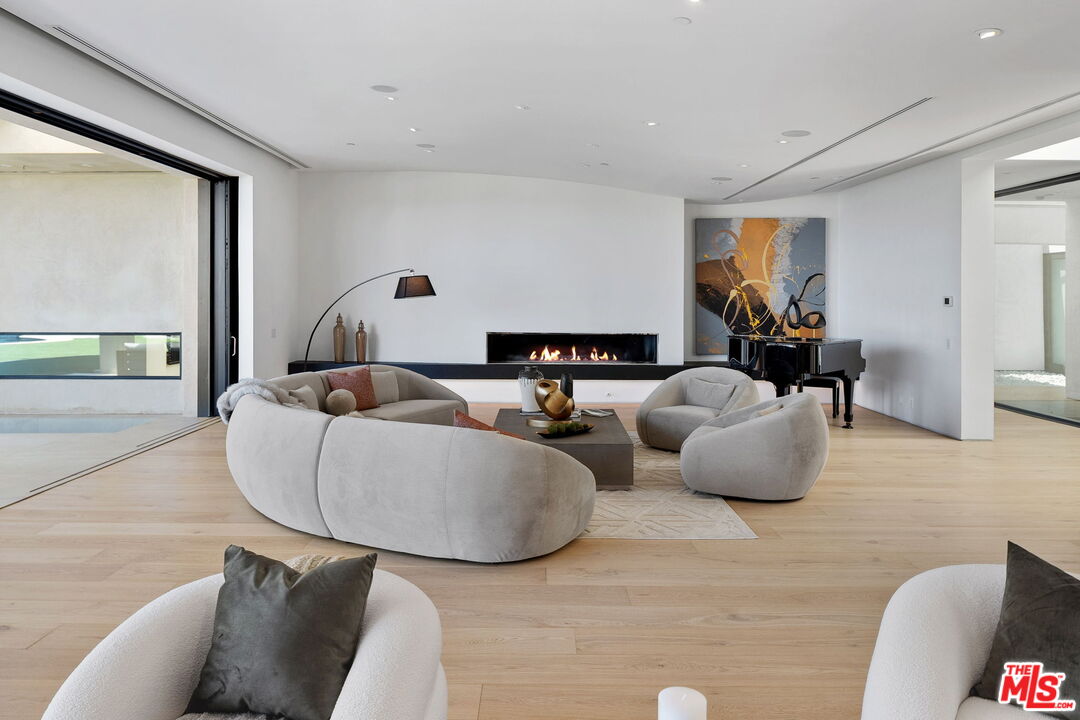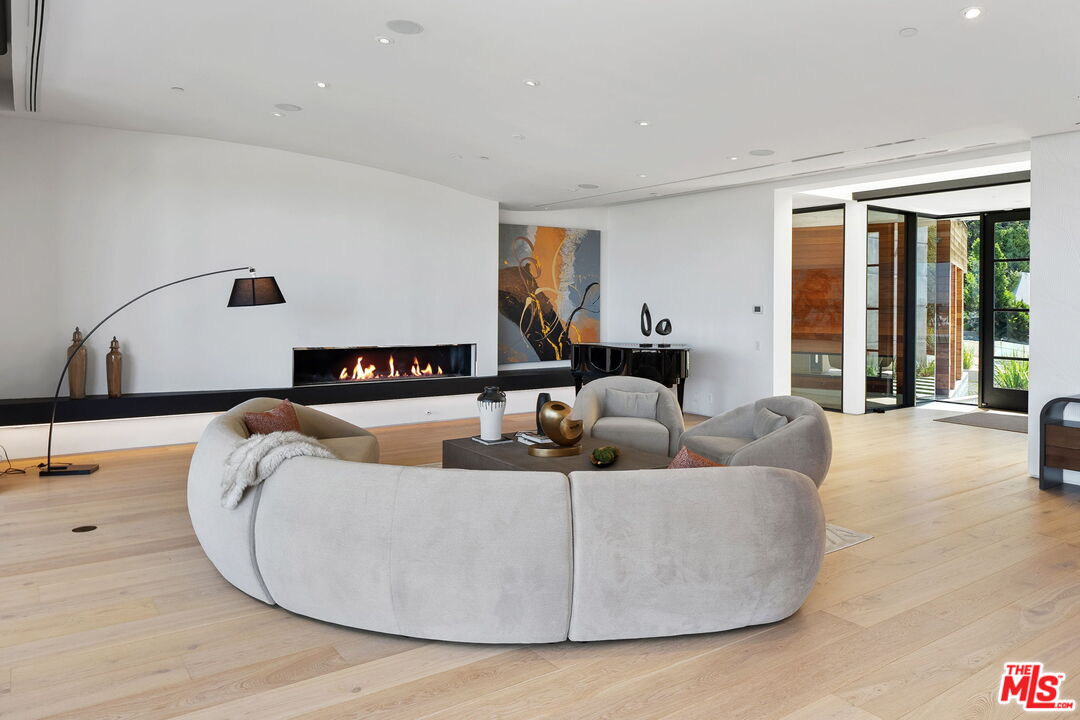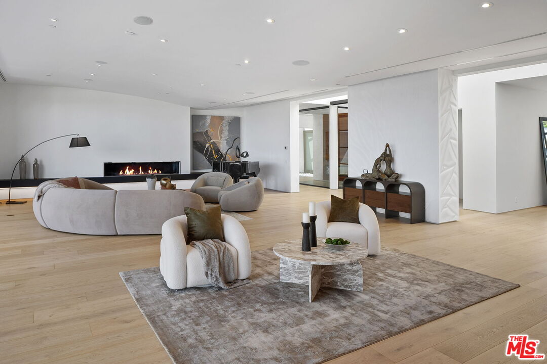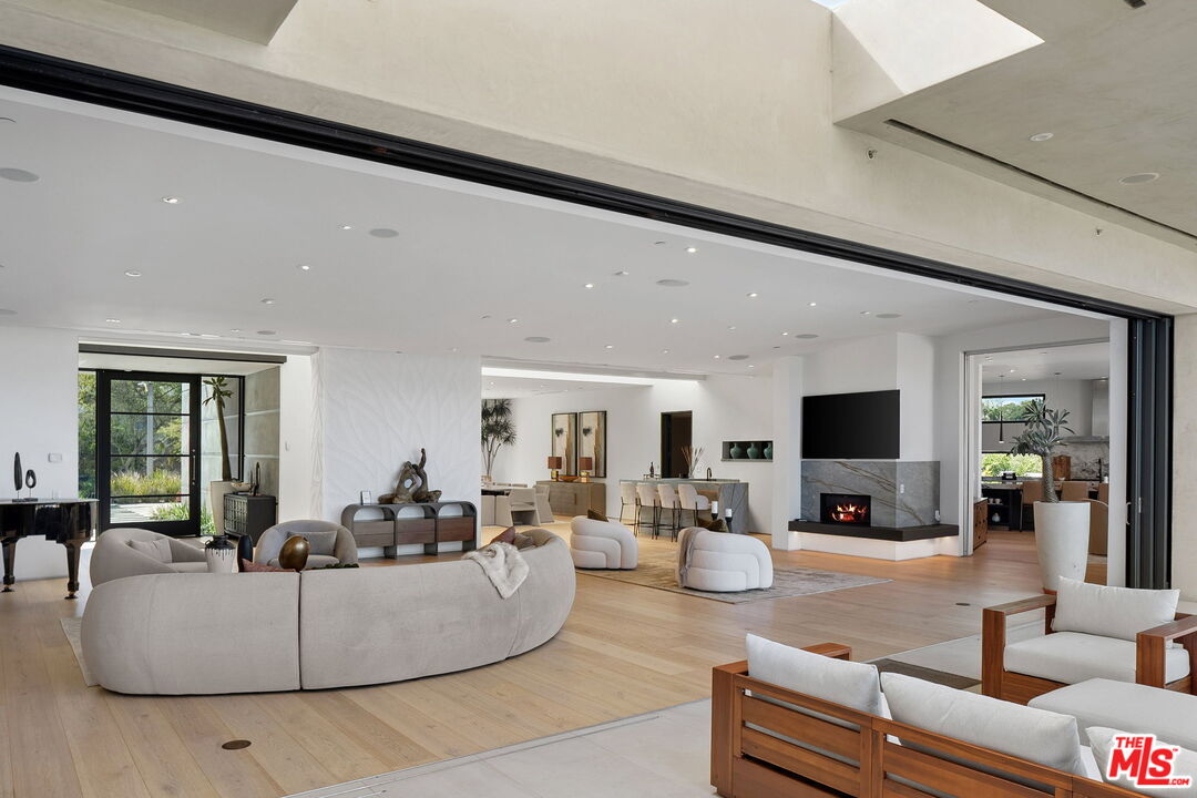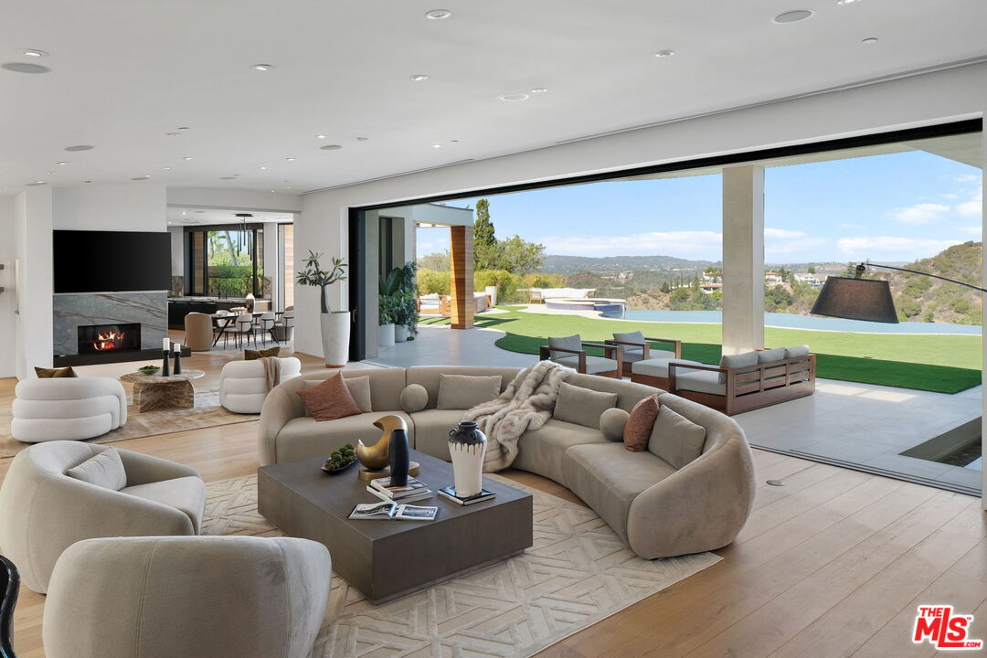 The Castle | A Signature Estate in Trousdale Estates. A rare offering within one of Beverly Hills' most prestigious enclaves, The Castle is a newly renovated masterpiece that artfully combines timeless design with modern sophistication. Nestled on a quiet cul-de-sac, this expansive 8,600-square-foot residence delivers extraordinary scale, absolute privacy, and uncompromising luxury. Originally built in 2008 and recently reimagined with the finest finishes, the home welcomes you with soaring ceilings, a dramatic skylight, and walls of floor-to-ceiling glass that dissolve the boundary between indoors and out. Inside, white oak hardwood floors, custom stone walls, and multiple fireplaces create an atmosphere of warm refinement. The chef's kitchen, outfitted with state-of-the-art appliances and a generous island, is designed to accommodate both intimate daily living and grand-scale entertaining. A skylit corridor leads to the expansive primary suite featuring a private sitting area, designer closets, a spa-inspired bath, and direct access to the pool and gardens.No detail has been overlooked in this residence, which includes a private home theatre, wellness center with sauna and steam shower, massage room, climate-controlled wine cellar, sophisticated bar, executive office, and well-appointed staff quarters.Set on over 20,000 square feet, the grounds are crafted for true resort-style living, boasting a newly completed stone hardscape, lush landscaping, an infinity pool, multiple fire features, and expansive outdoor lounge and dining areas. Sweeping canyon, city, and peek-a-boo ocean views provide a breathtaking backdrop from nearly every vantage point, with stunning sunsets that bathe the surroundings in a warm, golden glow, offering an unparalleled lifestyle of tranquility, elegance, and natural beauty. Located just minutes from world-renowned dining destinations such as Spago, The Polo Lounge, and Matsuhisa, residents enjoy effortless access to Beverly Hills' vibrant culinary scene. Combined with close proximity to Rodeo Drive's luxury shopping and cultural landmarks, The Castle offers not only a stunning home but a lifestyle defined by sophistication and exclusivity. This turnkey statement residence in Trousdale epitomizes unmatched quality, scale, and exclusivity, an opportunity for the most discerning buyer.