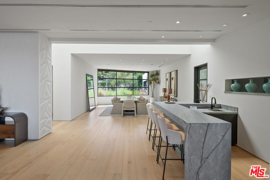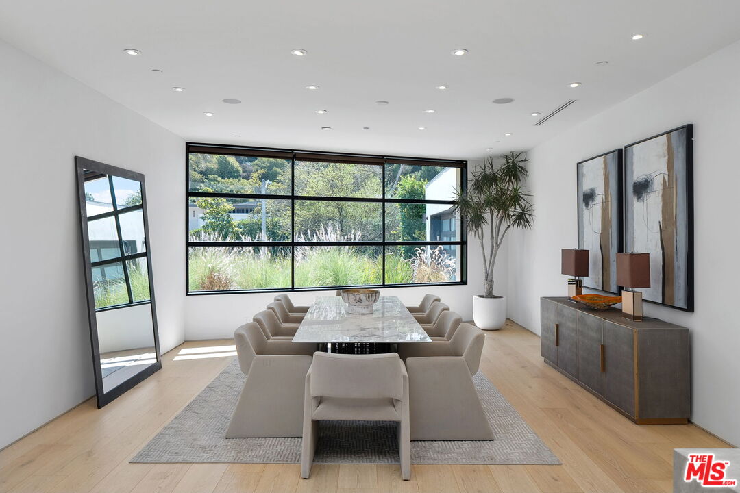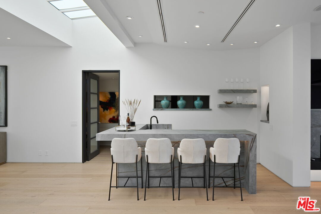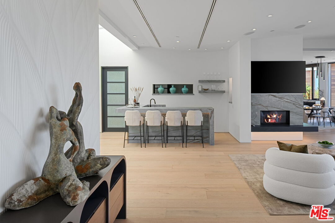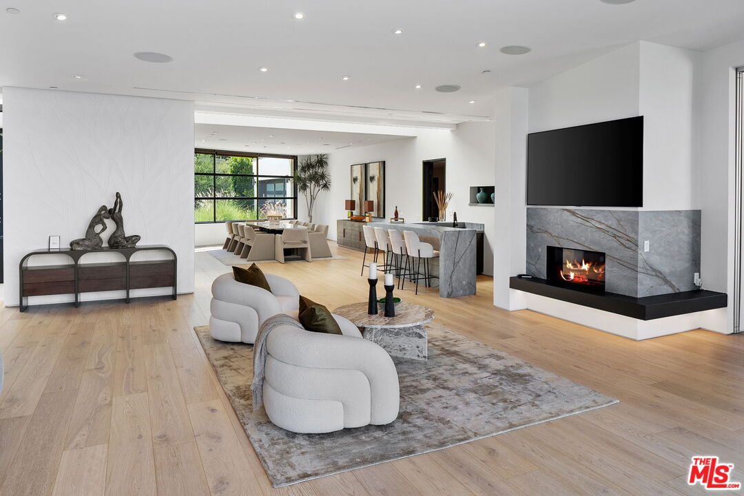 The Castle | A Signature Estate in Trousdale Estates. A rare offering within one of Beverly Hills' most prestigious enclaves, The Castle is a newly renovated masterpiece that artfully combines timeless design with modern sophistication. Nestled on a quiet cul-de-sac, this expansive 8,600-square-foot residence delivers extraordinary scale, absolute privacy, and uncompromising luxury. Originally built in 2008 and recently reimagined with the finest finishes, the home welcomes you with soaring ceilings, a dramatic skylight, and walls of floor-to-ceiling glass that dissolve the boundary between indoors and out. Inside, white oak hardwood floors, custom stone walls, and multiple fireplaces create an atmosphere of warm refinement. The chef's kitchen, outfitted with state-of-the-art appliances and a generous island, is designed to accommodate both intimate daily living and grand-scale entertaining. A skylit corridor leads to the expansive primary suite featuring a private sitting area, designer closets, a spa-inspired bath, and direct access to the pool and gardens.No detail has been overlooked in this residence, which includes a private home theatre, wellness center with sauna and steam shower, massage room, climate-controlled wine cellar, sophisticated bar, executive office, and well-appointed staff quarters.Set on over 20,000 square feet, the grounds are crafted for true resort-style living, boasting a newly completed stone hardscape, lush landscaping, an infinity pool, multiple fire features, and expansive outdoor lounge and dining areas. Sweeping canyon, city, and peek-a-boo ocean views provide a breathtaking backdrop from nearly every vantage point, with stunning sunsets that bathe the surroundings in a warm, golden glow, offering an unparalleled lifestyle of tranquility, elegance, and natural beauty. Located just minutes from world-renowned dining destinations such as Spago, The Polo Lounge, and Matsuhisa, residents enjoy effortless access to Beverly Hills' vibrant culinary scene. Combined with close proximity to Rodeo Drive's luxury shopping and cultural landmarks, The Castle offers not only a stunning home but a lifestyle defined by sophistication and exclusivity. This turnkey statement residence in Trousdale epitomizes unmatched quality, scale, and exclusivity, an opportunity for the most discerning buyer.