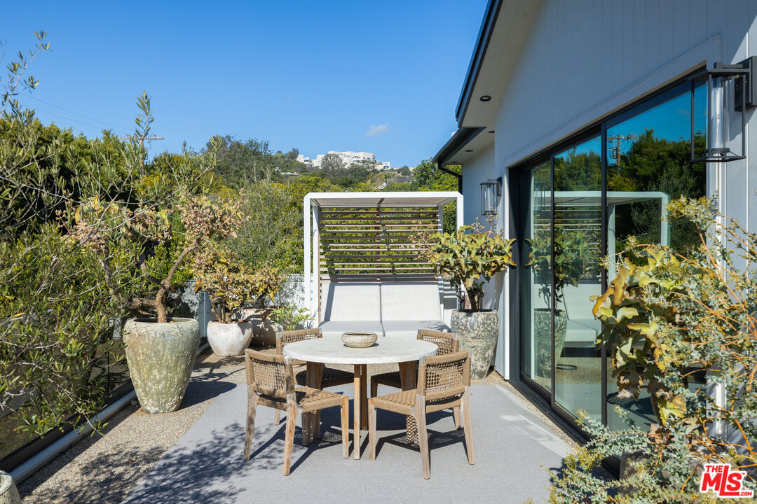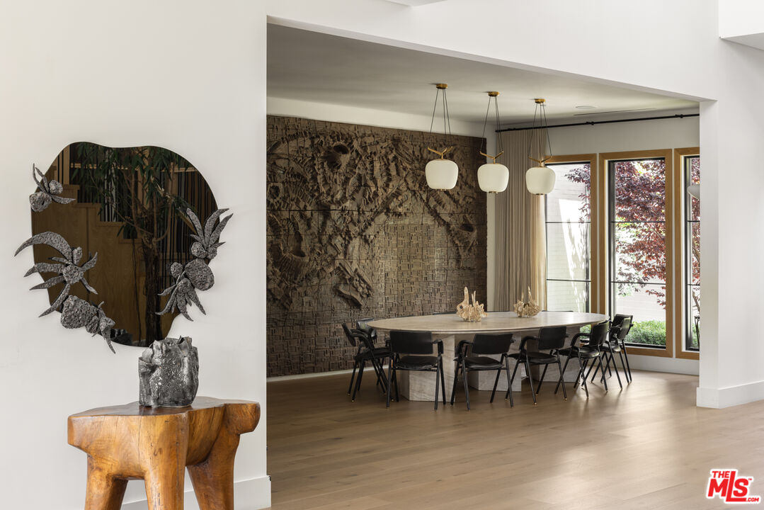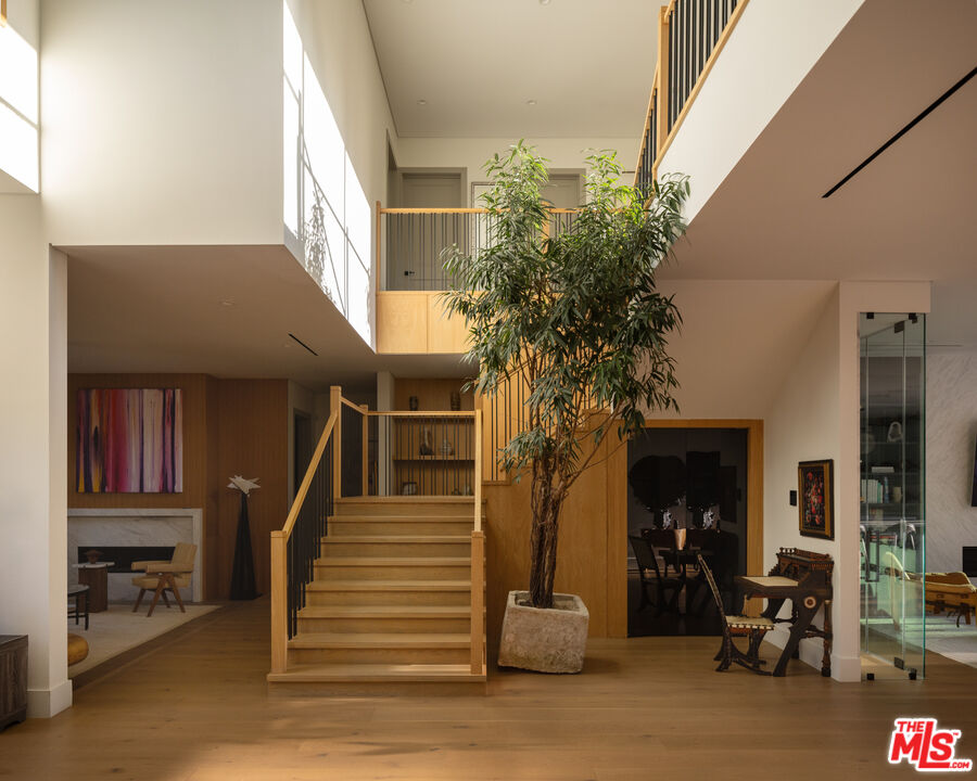 Tucked behind custom gates and mature hedging on one of the widest lots in the flats of North Bundy - with 120 feet of frontage - this modern Brentwood estate delivers an extraordinary blend of privacy, design, and innovation. The main residence offers 5 bedrooms and 7 bathrooms, plus a versatile office/den/nursery, while a fully equipped detached guest house with its own bedroom and bathroom brings the total to 6 beds and 8 baths. Purposefully designed for both entertaining and daily comfort, the home opens to a resort - style backyard with a large, private pool, mature landscaping, an outdoor kitchen, and a fire pit - your own secluded sanctuary. The expansive lot also offers space to add a sports court on the side of the home. A spacious 2-car garage is complemented by gated parking for up to four additional vehicles. Security is next-level, featuring an AI-powered camera system, automated perimeter alerts after hours, and 24/7 armed patrol service already in place - ensuring peace of mind without compromise. Inside, expansive open-plan living spaces connect effortlessly to the outdoors. The main kitchen stuns with dual islands, all Miele built-in appliances - including an espresso station, refrigerator, oven, microwave, and dual dishwashers - and a sleek frameless integrated stovetop. Discreetly tucked away, the chef's kitchen is ideal for hosting or staff use, outfitted with an 8-burner Wolf range, additional Miele refrigerator and freezer, and a spacious walk-in pantry. A climate-controlled wine rack adds sophistication and function for wine collectors. For elevated living and entertaining, the home includes a state-of-the-art private theater with over $100K in hidden, professional-grade AV equipment and acoustically transparent finishes - creating a truly immersive cinematic experience. Upstairs, a sun-drenched hallway opens to a spacious deck for second-level indoor-outdoor living. The primary suite features its own private terrace with fireplace and a walk-in closet, complete with custom cabinets and island with key-card access drawers for valuables. Three additional guest bedrooms upstairs each offer en-suite baths and custom closets- ideal for balanced family living. Smart home integration elevates every detail, with wall-mounted displays and app-based controls for lighting, climate, sound, and security. A roof-mounted cell antenna boosts signal, and Wi-Fi boosters ensure strong, consistent coverage throughout the property. Custom furniture and collectible lighting fixtures - meticulously curated to complement the home's design - are also available for purchase.