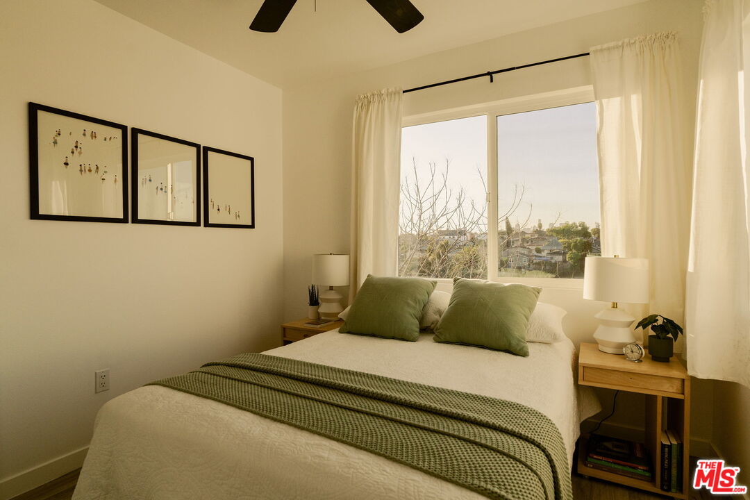 Look at those views! Welcome to an incredible opportunity to own a beautifully updated upper-level 2 bedroom, 1.5 bath Tenancy in Common residence in the heart of Boyle Heights, where indoor/outdoor living meets vibrant city energy. You'll feel right at home under soaring vaulted ceilings, and enjoy a bright, open living space centered around a charming fireplace. The entertainer's kitchen flows seamlessly into the living room, creating the perfect setting for hosting friends or enjoying cozy nights in. Interior laundry and energy-efficient mini-splits provide convenient, zoned heating and cooling for year-round comfort. Through your bedroom window, take in sweeping vistas of lush greenery, the DTLA skyline, and the historic First Street Bridge. Whether you're sipping your morning coffee, tending to your garden, or dining under the stars, a private yard offers a rare taste of serenity in the middle of the city. An urban homesteader's paradise, the outdoor areas feature an array of edible plants like grapes, tomatoes, artichoke, passion fruit, lettuce, and kale, as well as five types of fruit trees! Commuting is a breeze with easy access to freeways and the Metro E Line, as well as close proximity to DTLA. Go for a jog at the nearby Evergreen Track or stop for a cold brew and a mouthwatering breakfast around the corner at Picaresca Cafe. Add to your already excessive plant collection with a visit to Latinx with Plants or finally take that pottery class at Still Life Ceramics Studio. The Arts District is just minutes away for a relaxing Sunday brunch or a spontaneous late night out. If you've been looking for a way to get into the LA market, this Tenancy in Common home may be the perfect fit for you - a rare blend of character, convenience, and affordability in the heart of Los Angeles!