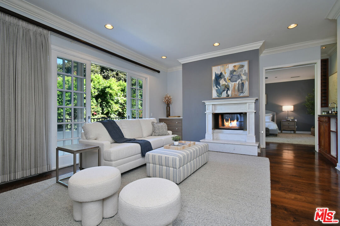 Welcome to this private, gated, two-story traditional with a pool on a quiet cul-de-sac in the award-winning Lanai Road School District! This beautiful home offers 5 bedrooms + large den & 5 bathrooms, and a detached guest house with a kitchenette, bathroom and living area. An ideal layout for family living, multi-generational living, entertaining and those who want a live/work sanctuary. The home features hardwood floors and gorgeous crown moldings throughout, a skylight entry, eat-in cooks kitchen which opens to the family room, a living room with a stone fireplace, and an elegant formal dining room with wainscoting. The first floor also features four bedrooms, including one large bedroom which opens to the pool area and could be used as a screening room, a large play room or a second primary bedroom. The second floor boasts a "Four Seasons" style primary suite with an office, a den/sitting room with a wet bar and double fireplace to the bedroom, a balcony overlooking the backyard, two spacious walk-in closets, and a primary bath with dual vanity sinks, a spa tub, and steam shower, plus a workout or yoga room which could also be used as 6th bedroom or nursery. The home features sliding French doors leading to a private backyard patio and grassy yard with a built-in BBQ, as well as a beautiful stone patio surrounding the salt water pool and spa. Other amenities include: new roof with solar, security system, laundry room and a 2-car garage. This private oasis is supremely located on a quiet street south of Ventura Blvd and just minutes from boutiques, restaurants and daily essentials. Don't miss this gem!