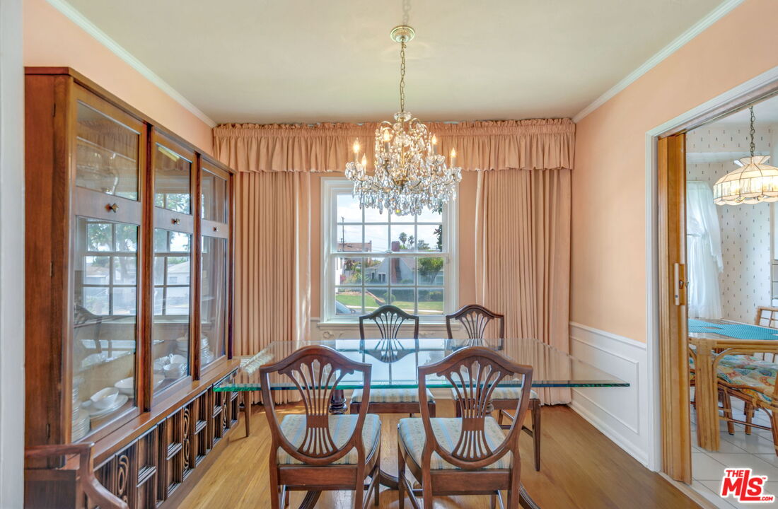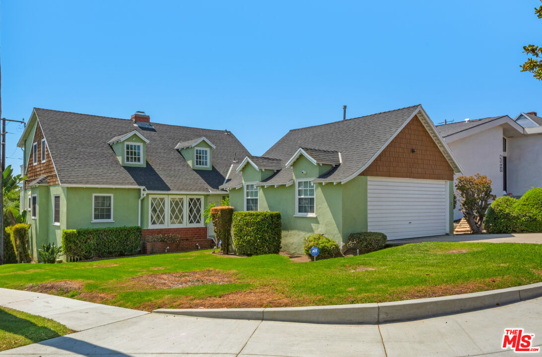Perched on a large corner lot in the heart of coveted Windsor Hills, this picturesque storybook home offers timeless Cape Cod charm with sweeping westward views of the neighborhood and city. Lovingly maintained, the 3-bedroom, 2.5-bath residence sits on an expansive 8,100+ sq. ft. lot with a spacious front yard, private backyard, and a slightly detached two-car garage connected by a covered walkway. Its architecture is rare for the area, lending a unique presence to this special property. The main entry, tucked away for privacy, opens to a sun-filled living room with gleaming hardwood floors and a dramatic double-sided brick fireplace that also serves the adjoining family room. A formal dining room connects seamlessly to the large kitchen with abundant counter space, an eat-in breakfast nook, and service porch with access to the rear yard. The sprawling family room features warm knotty pine paneling, a built-in wet bar, and expansive windows framing treetop views. Sliding doors lead to a wide wood deck that spans the length of the home, ideal for entertaining or enjoying serene sunsets. Flexible living is enhanced with a main-level bedroom and two baths, while upstairs, the private primary suite boasts soaring vaulted ceilings, a generous ensuite bath, a dressing area, and a full-length deck with panoramic city views. An additional guest bedroom and loft-style office complete the upper level, creating a private retreat. Windsor Hills remains one of Los Angeles' most sought-after neighborhoods, prized for its central location, community feel, and access to parks, hiking trails, restaurants, and local businesses. Schools, places of worship, and community gardens are within walking distance, and nearly every part of the city is just 20 minutes away. Rarely does a home of this size, style, and character come to market in Windsor Hillsdon't miss the opportunity to make it yours. This is a trust sale, no court confirmation required. Your one-of-a-kind home awaits you!
