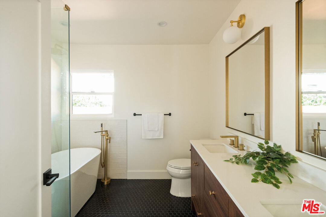 Live your California dream in the sweetest 3bed/2bath California Bungalow with a permitted studio guest house adjacent to View Park + Leimert Park! A wide street lined with towering palm trees welcomes you home, reminding you that you have in fact actualized your fantasies of building your ideal life in the heart of the city. Enjoy an easy transition into ownership with a home that has been overhauled with permitted improvements including a new roof, new plumbing (including a new sewer line!), new electrical wiring + a new 200amp panel, new central heat + air and more! Inside an open floor plan presents a bright and airy space to spend your off days, basking in the comfort of home. New engineered white oak flooring and custom white oak cabinetry bring a cozy warmth to the space. The custom kitchen features built-in stainless steel appliances and an oversized island with seating for three! Bring those bookmarked recipes to life, leaving the french doors nearby ajar with the breeze carrying the scents of your latest creation through the garden. Enjoy the fruits of your labor on the covered front porch watching dusk settle in and the colorful cotton candy sunset skies transition. Three spacious bedrooms complete the space, including a primary suite with french doors leading to the garden. Indulge in self care in your private sanctuary, a true retreat with a spa-like bathroom with a dual vanity, newly tiled shower stall with a custom enclosure and separate soaking tub and walk-in closet nearby. The newly installed privacy fencing encases the sprawling yard space, framing the ample creating a private haven for enjoyment. No expense was spared on the guest house, a permitted ADU with its own address - prime for income potential or visiting family + friends! Newly constructed, it enjoys all new systems including a 150-amp panel, it's ready for your enjoyment. The kitchenette and full bath both enjoy high quality design aligned with the main home. Perfectly positioned central to so many areas of the city, with easy access to DTLA, Culver City, the Westside, and LAX. Locals know the draw of nearby gems Hilltop Coffee, Simply Wholesome, Jon & Vinny's Slauson, and the eclectic food + arts scene of nearby West Adams all just minutes away. Welcome home!