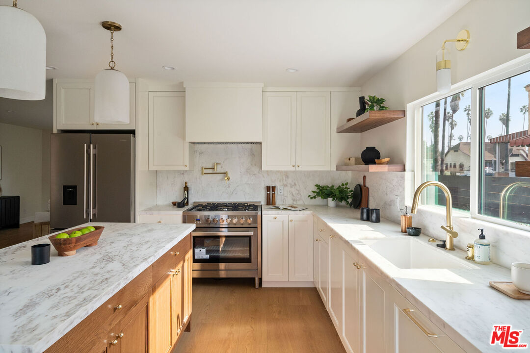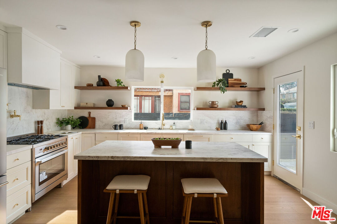 Step into quintessential California living with this beautifully reimagined 3-bedroom, 2-bath modern Tudor, complemented by a permitted studio guest house and ideally located near View Park and Leimert Park. Framed by a serene, palm-lined street, the home offers a tranquil retreat while remaining at the pulse of city life. Meticulously updated with permitted improvements including a new roof, modern plumbing and sewer line, 200-amp electrical system, and central heating and air the residence is both turnkey and effortlessly elegant. Inside, an open-concept layout is flooded with natural light, enhanced by engineered white oak floors and custom oak cabinetry that imbue the space with warmth and sophistication.The kitchen is a seamless blend of form and function, outfitted with built-in stainless steel appliances and an oversized island with seating for three, while a side-door access enhances everyday convenience. Just steps away, the backyard unfolds as a serene retreat, perfect for al fresco dining or quiet evenings, as the sky transforms with the colors of the setting sun.The primary suite is a private sanctuary, offering garden access, a spa-inspired bath with dual vanities, a newly tiled shower, soaking tub, and a generous walk-in closet. The backyard, fully enclosed with new fencing, provides a secluded environment for relaxation and gatherings.The permitted guest house extends the home's versatility perfect as a rental, creative studio, or accommodation for visiting family and friends. Upgrades include a dedicated 150-amp panel + thoughtfully designed kitchenette and full bath, echoing the main residence's attention to detail.Perfectly positioned central to so many areas of the city, with easy access to DTLA, Culver City, the Westside, and LAX. Locals know the draw of nearby gems Hilltop Coffee, Simply Wholesome, Jon & Vinny's Slauson, and the eclectic food + arts scene of nearby West Adams all just minutes away. 3/2 Main house measures 1,620 SQFT, Studio ADU measures 302 SQFT for a total of 1,922 SQFT. Welcome home!