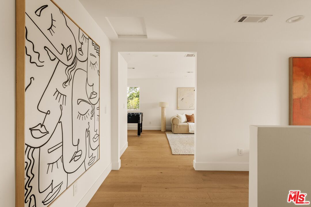 Discover unparalleled elegance at 4626 Berryman Ave, a fully remodeled Westside compound offering expansive space, sophisticated design, and exceptional amenities. Set back from the street, the main residence features 5 bedrooms and 7 bathrooms, showcasing engineered oak hardwood floors throughout that exude warmth and timeless style. Entertain with ease at the wet bar complete with sink and dual wine refrigerators, or create culinary masterpieces in the extra-large kitchen, boasting quartzite counters, a 12-foot island, built-in storage, a butler's pantry with prep sink, and hookups for two washers and dryers. The home's layout is designed for both privacy and connection, with 2 downstairs suites and 3 upstairs en suite bedrooms, complemented by a spacious second-floor family/recreation room with attached powder room, easily convertible to a sixth bedroom. The primary suite spans the entire back of the home, offering a soaking tub, dual vanities, and a large walk-in closet and dressing area, while a second-floor balcony provides serene sunset views. Set on an extra-large lot, the property features a private backyard and Trek decking in both front and rear, perfect for outdoor gatherings or quiet relaxation. The ADU adds versatility with 2 bedrooms, 2 bathrooms, and its own dedicated front yard, ideal for guests, multi-generational living, or rental income. 4626 Berryman Ave is more than a home, it's a rare Westside retreat combining luxury, space, and privacy in one remarkable package.