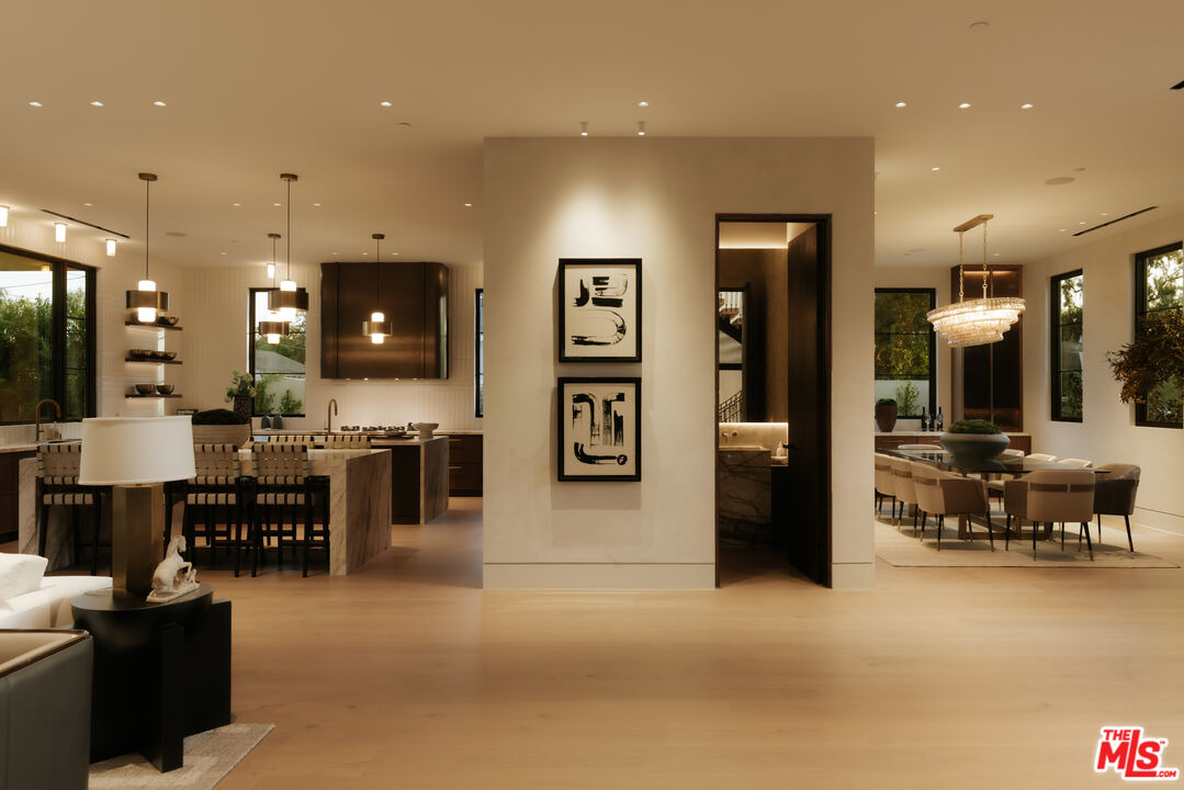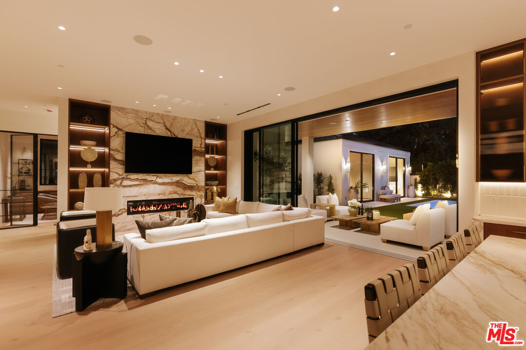Stunning modern Frenchinspired estate offering refined luxury and exceptional craftsmanship in a prime Sherman Oaks location. Thoughtfully designed by Sophea Interior Design, this residence reinterprets classic French maison elegance through a clean, modern lens, creating a timeless yet contemporary living experience. Spanning over 5,300 sq ft, the home features a designer chef's kitchen with top-of-the-line Miele appliances, an expansive center island with dual-sided seating, walk-in pantry, and abundant custom storage. The open-concept living area is anchored by a dramatic floor-to-ceiling marble fireplace and expansive pocket doors, seamlessly blending indoor and outdoor living. The luxurious primary suite is a private retreat, complete with a terrace, mini bar, makeup area, spa-inspired bathroom, and dual walk-in closets. Resort-style grounds include a pool and spa with water feature, built-in BBQ, lush landscaping, and a one-bedroom ADU with kitchenetteideal for guests or extended living. Private and gated with impressive street presence, the home is located on a desirable tree-lined street, just minutes from Harvard-Westlake, Campbell Hall, Erewhon, Equinox, Sugarfish, Sportsmen's Lodge, and Ventura Boulevard's premier shopping and dining. Additional features include Control4 smart home system, security cameras, and surround sound throughout.