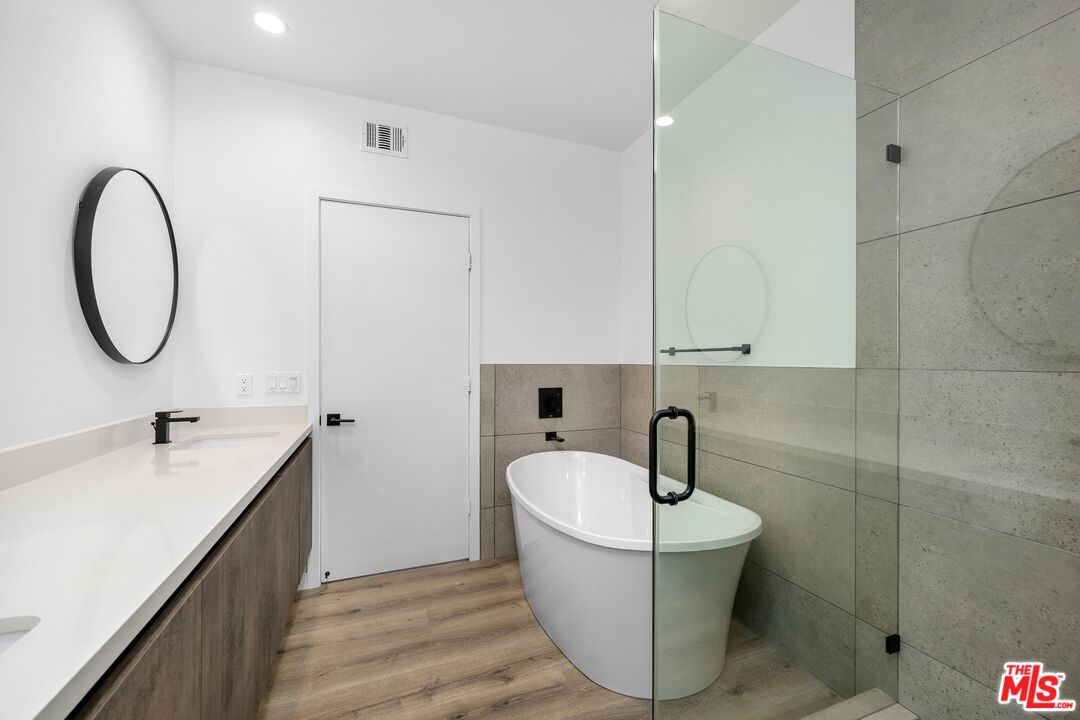 Experience upscale living in this 4BD/3.5BA detached single-family home located in the exclusive Vantage Villas community. With just over 2,400 sqft of thoughtfully designed space across three levels, this residence blends sophisticated style with practical comfort. The open-concept main floor is bright and airy, featuring soaring ceilings and seamless flow between the living and dining areas. At the heart of the home is a gourmet kitchen equipped with Fisher & Paykel appliances, Caesarstone countertops, imported porcelain backsplash, and custom Italian cabinetry with a striking two-tone finish, perfect for everyday living or entertaining in style. Outdoor living is just as impressive, with three private balconies and a large patio offering multiple options for dining, lounging, or hosting gatherings under the stars. Upstairs, the primary suite is a serene escape with a spacious walk-in closet and a spa-inspired bathroom featuring a freestanding soaking tub, dual vanity, and designer shower. Two additional bedrooms share a sleek full bath, while the lower level includes a versatile flex space with an ensuite bath and direct access to the patio, ideal for a guest suite, home office, or gym. This property also features a 3-car garage with direct access for added convenience. Situated within the award-winning Colfax Charter school district, this home is the perfect blend of modern elegance and comfort.
