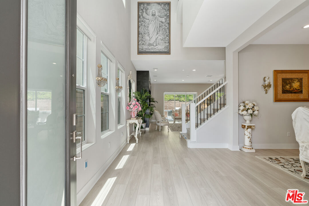 Located within Montebello's prestigious guard-gated Metro Heights community, this thoughtfully curated Toll Brothers residence redefines modern hillside living through an effortless blend of contemporary design, lifestyle flexibility, and resort-style amenities. Set across three levels, the Outlook Elite offers a balance of refined materials and inviting spaces, designed as much for daily comfort as for elevated entertaining. A soaring three-story foyer welcomes you into a home where every space has intention. Just beyond, the living room centers around a sleek modern fireplace, framed by natural light and warmth. French doors open directly to the outdoor living area, creating the perfect setting for al fresco dining, weekend lounging, or gathering under the stars. The kitchen, thoughtfully positioned at the heart of the home, features clean lines and high-end JennAir appliances. Quartz countertops, a walk-through pantry, and direct access to the formal dining room offer both functionality and sophistication. Every surface has been carefully selected, with finishes that reflect a quiet sense of luxury. With five bedrooms and seven bathrooms, the layout is designed for privacy, versatility, and ease. On the main floor, a guest suite doubles as an ideal office, tucked away for focus yet easily accessible. Upstairs, the primary suite serves as a peaceful retreat with a generous walk-in closet and a spa-inspired bathroom that includes a deep soaking tub, dual vanities, and a rain-style shower surrounded by porcelain tile. Two additional bedrooms feature en-suite baths, while a third shares a beautifully appointed hall bath. An open loft provides additional space for reading, working, or relaxing. On the third level, a flexible family room opens to a covered balcony with sweeping views, offering the perfect space for a home theater, game lounge, or creative studio. Every inch of the home is finished with thoughtful details including handcrafted tilework, premium quartz surfaces, and a cohesive, timeless material palette. Outside, the Metro Heights lifestyle unfolds. Residents enjoy access to a private clubhouse, resort-style pool and spa, state-of-the-art fitness center, and elegant social lounges. Scenic walking trails and lush landscaped paths weave throughout the community, offering panoramic city views and peaceful green spaces that make everyday living feel extraordinary. Additional features such as a whole-home water softener, a solar panel system, and full interior insulation reflect the home's commitment to efficiency and comfort. Rarely does a new construction home offer this level of intention, design, and community. This is more than a home. It's the beginning of your next chapter in Montebello's most desirable hilltop enclave.