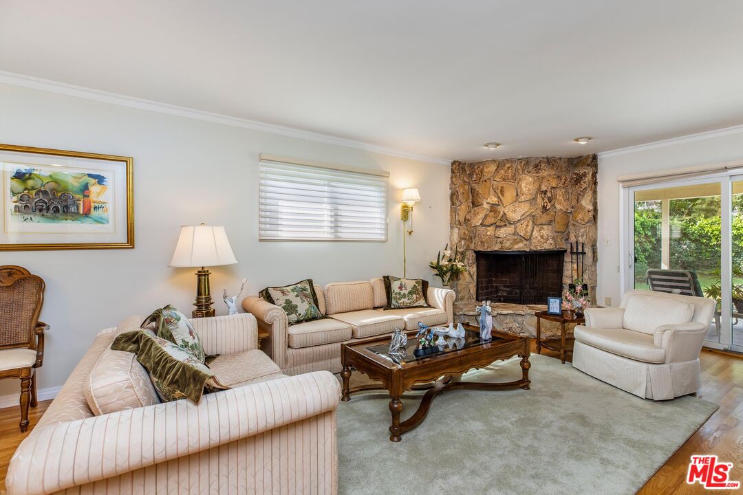 Welcome to this well-maintained, move-in ready home located on a quiet double cul-de-sac in the flats of Encino. Cared for by the same family since 1956, this 3BD/2BA residence offers an ideal layout, updated kitchen, and a generously sized, private backyard. Inside, warm wood flooring and natural light set a welcoming tone. The bright, open concept kitchen features a skylight, stainless steel appliances, including a double oven, ample cabinetry, and bar seating that opens seamlessly to the formal dining area. From there, the space flows into a living room anchored by a stone gas fireplace and sliding glass doors that lead to the backyard, creating an easy indoor-outdoor connection. The primary suite is thoughtfully positioned at the end of the hallway and includes two closets, an ensuite bath with an enclosed step-in shower, and direct access to the backyard. Two additional bedrooms offer charming window shutters, ample closet space, and share a well-appointed hall bath with dual vanity and shower-tub combination. An additional living area off the hallway, complete with closet storage and backyard access, provides flexibility as a den, home office, or potential fourth bedroom. Outdoors, the expansive backyard offers a peaceful retreat with a covered patio, lush landscaping, a large grassy lawn, and plenty of room to add a pool. Additional features include a two-car garage with direct kitchen access and generous driveway parking. Conveniently located near Hesby Oaks Charter School and moments from the shops and dining along Ventura Boulevard, this home presents a wonderful opportunity to enjoy space, privacy, and a highly desirable location.