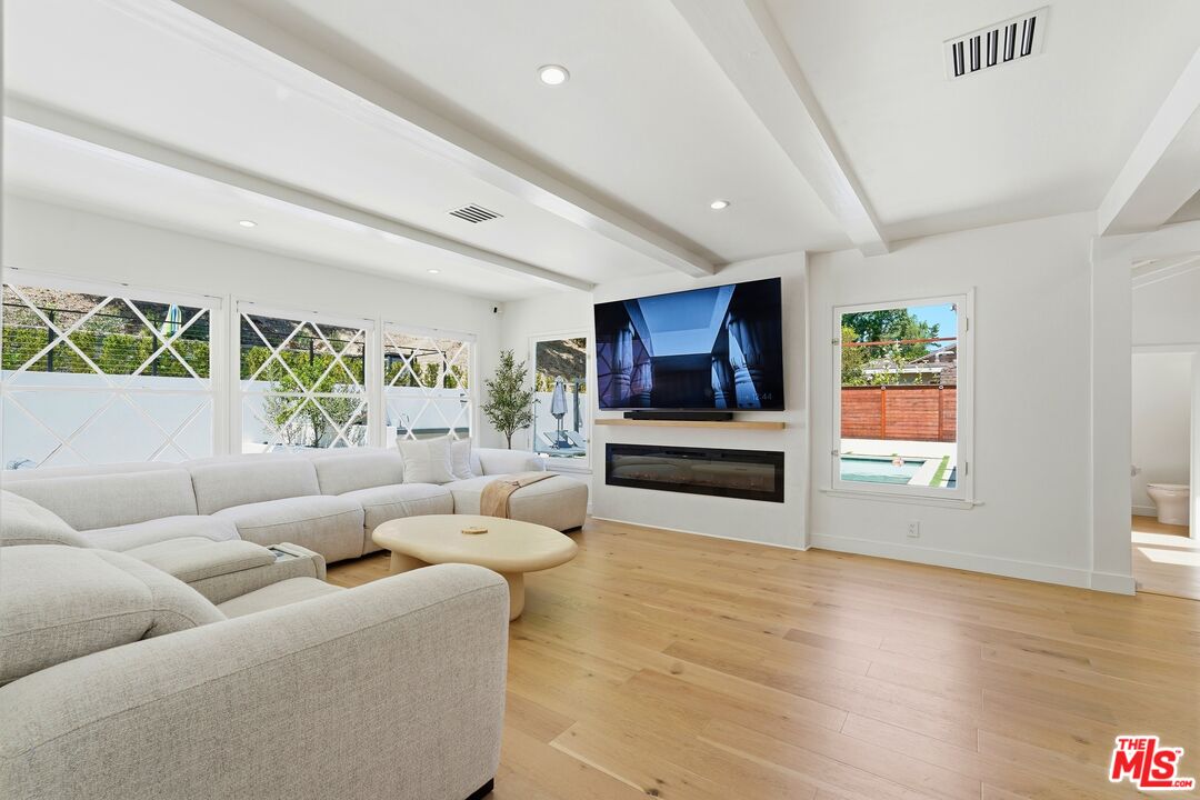 Welcome to a rare offering south of Ventura Boulevard, nestled on a quiet cul-de-sac where privacy, tranquility, and community come together seamlessly. Set on an expansive 17,563 sq ft lot, this beautifully upgraded 4-bedroom, 3-bathroom residence spans approximately 2,310 sq ft of thoughtfully designed living space, flooded with natural light and surrounded by a peaceful neighborhood known for its warmth and close-knit feel.From the moment you enter, the home showcases a bright and inviting atmosphere with fresh interior paint, new flooring throughout, and a seamless flow ideal for both everyday living and entertaining. The fully updated kitchen is equipped with brand-new appliances, offering both style and functionality for the modern homeowner. Every detail has been considered, including new A/C and air ducts for optimal comfort, and renovated bathrooms featuring new vanities and a newly installed bathtub.The outdoor space is truly a standout featuredesigned for both relaxation and entertainment. Enjoy a resort-style backyard complete with a sparkling pool enhanced by solar heating, a built-in BBQ area, and a newly constructed patio with a fire pit and outdoor TVperfect for hosting or unwinding under the stars. For added fun and versatility, the property also includes a private basketball court and an in-ground trampoline, creating a unique environment for all ages.Adding to the home's versatility is a 2-car garage, currently converted into a vibrant kids' playroomideal for flexible living, creative space, or easily returned to its original use. The property also features an extended private driveway with convenient in-and-out access, offering ample parking for up to 6 vehiclesan exceptional feature for both everyday living and entertaining guests.Tucked away in a serene cul-de-sac, this home offers exceptional privacy while still being part of a welcoming neighborhood community, where neighbors enjoy a peaceful lifestyle and stay connected through their own local network.This is a rare opportunity to own a turn-key home in one of the most desirable pockets south of Ventura Boulevardwhere comfort, style, and community truly meet.