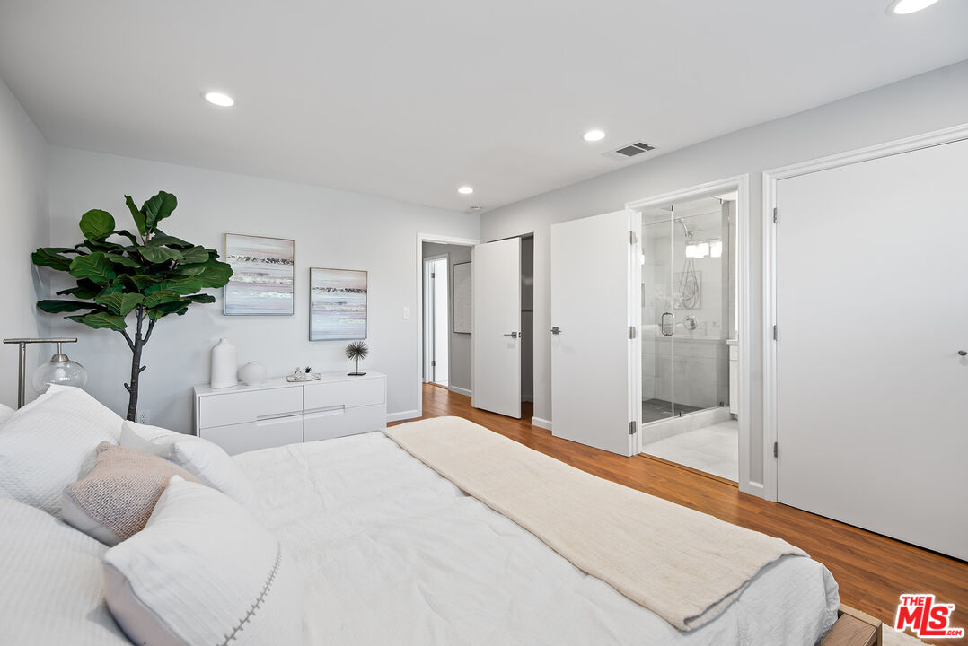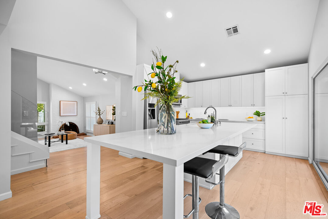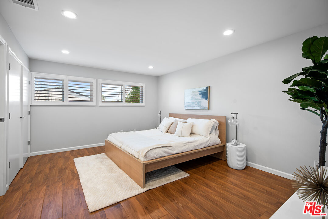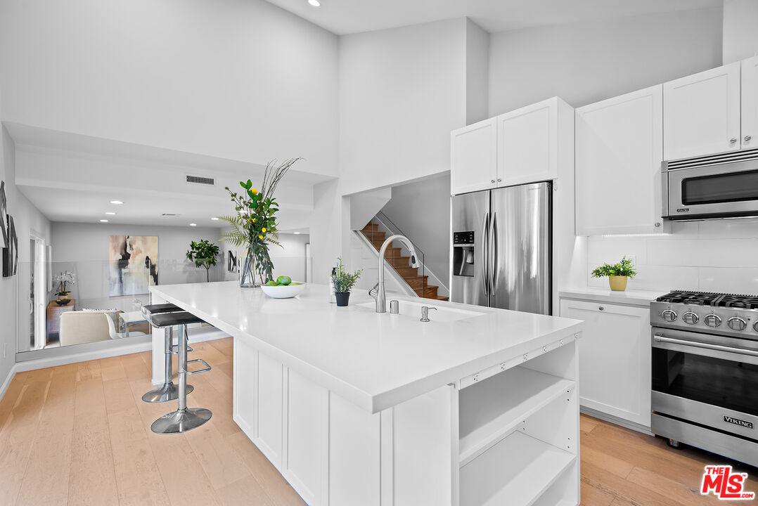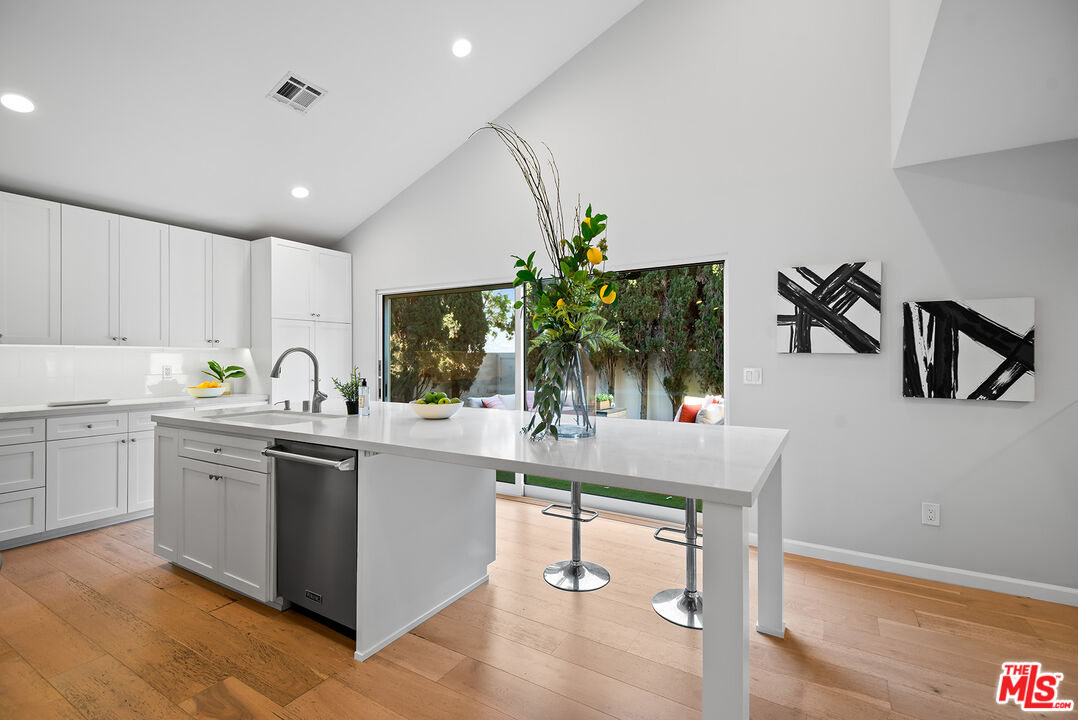 Thoughtfully remodeled from top to bottom, this lovely single-family home sits on a picturesque, tree-lined street in a highly sought-after Westside location. The spacious living room is filled with natural light and showcases pitched ceilings, wide plank white oak hardwood floors, and an elegant fireplace. Just beyond, the stunning kitchen impresses with vaulted ceilings, quartz countertops, top-of-the-line Viking appliances, an oversized island with seating, abundant cabinetry, and expansive panel doors that open directly to a lush backyard complete with a private putting green. A sleek glass partition subtly separates the kitchen from the family and dining area, where large glass doors extend the living space outdoors, making it ideal for enjoying Southern California's indoor-outdoor lifestyle. The first floor also features a guest bedroom, ideal for use as a home office, along with a beautifully appointed bathroom with a glass shower. Upstairs, three bedrooms await, highlighted by a generous primary suite with a spa-like en-suite bath featuring a dual-sink quartz vanity, glass-enclosed shower, porcelain tile finishes, and a laundry chute. Two additional well-sized bedrooms and a full bathroom complete the upper level. Additional amenities include an attached two-car garage with driveway parking, abundant windows that fill the home with natural light, Nest thermostat, excellent closet storage, lush landscaping, and so much more. Perfectly positioned in the highly desirable Del Rey neighborhood, this exceptional home is just moments from the Ballona Creek Bike Path, the beach, Marina del Rey, Playa Vista, and Culver City.