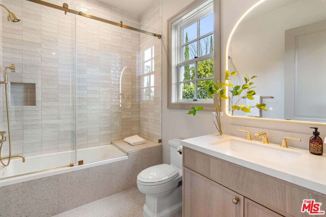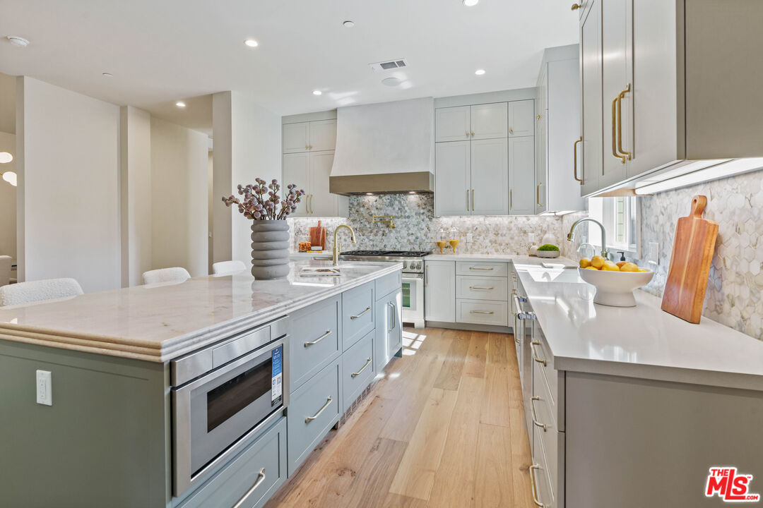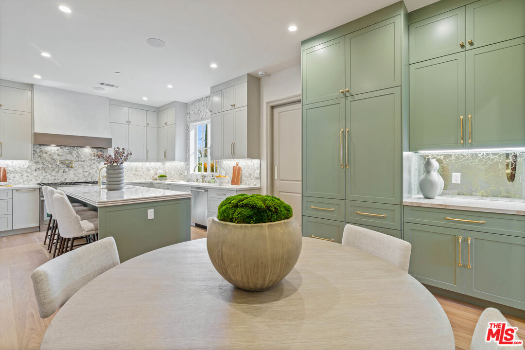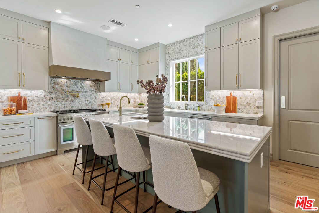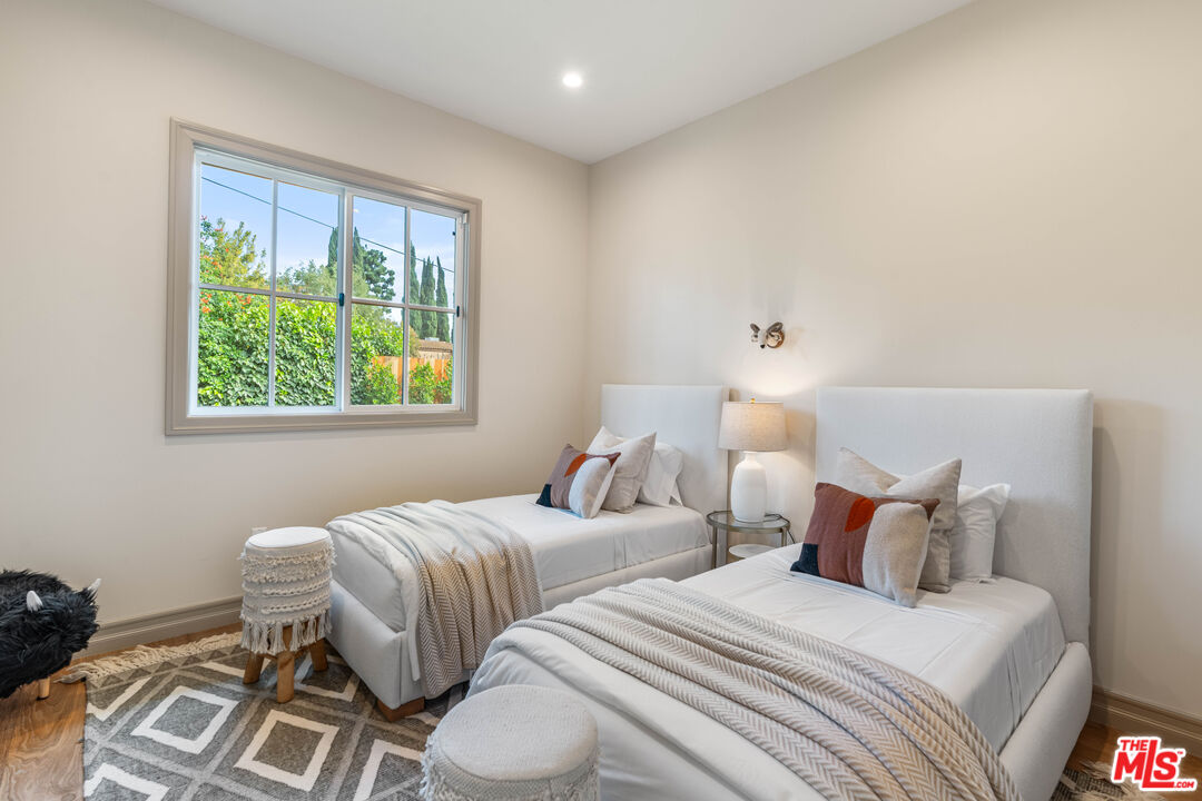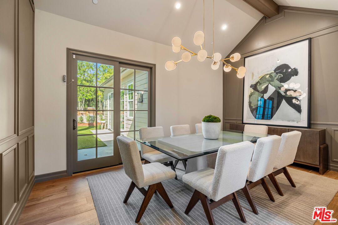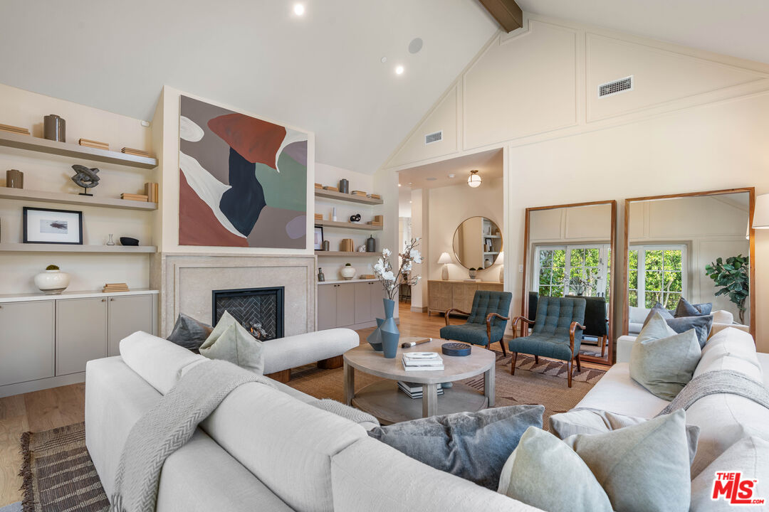 Welcome to this stunning one level new construction on a double cul-de-sac in Valley Village. A HUGE front door greets you past the Doorbird assisted gated entryway. The home has a traditional layout with a center hall that unveils each room as you pass. First off is the "Great Room" with 15 foot ceilings, wood beams, double sliding French Doors that open to a large entertainers yard, a stunning marble fireplace framed with bookshelves and storage. Across the hall you'll find your guest powder room with custom "Taj Mahal" stone counters, Toto toilet and Newport Brass fixtures. Just past the powder is laundry and mud room. Now, off to the "Cooks Kitchen" with Thermador Appliances, Built-in French door fridge/freezer and drawer fridges in island, seating at the island for 4+ as well as a breakfast nook, coffee bar and a large walk in pantry. The dining room is adorned with custom paneling, moody paint choices, vaulted ceilings and access to the yard. Next, past the wall of custom storage cabinets are two ensuite bedrooms. Down the hall you'll find the Primary Suite with an office, Vaulted ceilings with wood beams, hardwood floors, French Doors to the yard and the most attractive bathroom with Crema Marble flooring, counters, and surround on the sunken tub with Newport Brass fixtures, an exceptionally large shower shows off the custom Calcutta Marble tile and beautiful brass surround. Now, lets make our way outside. This 15k+ lot has one neighbor to the South and the rest of the massive yard is framed by rear yards. Privacy Galore. There is large pool and spa that was rebuilt with new eqpt, tile and plaster. The gazebo and built in BBQ overlook the wrap around yard that has multiple areas for a Sports Court or Pickleball, guest house or just running around. Enjoy the trees and the ancient Sycamore that the home was built around, truly special. A pleasure to view.