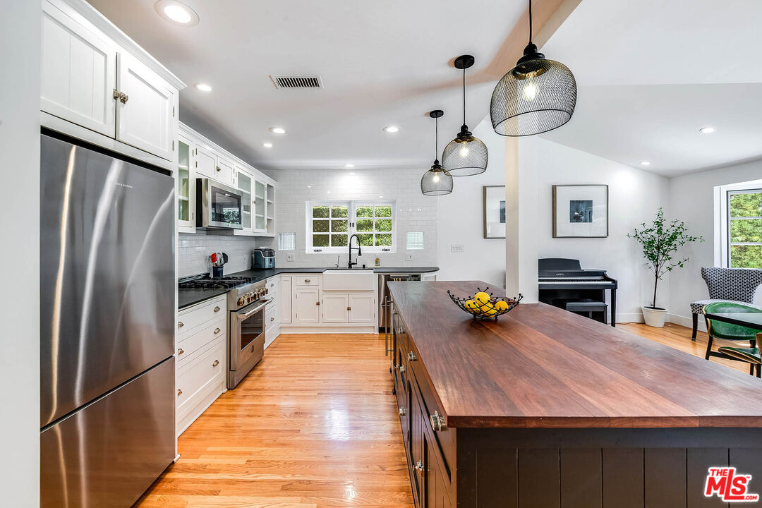 Nestled in the sought-after Hidden Woods enclave of Sherman Oaks, this newly remodeled Craftsman-style residence blends timeless character with elevated modern design. Five bedrooms, PLUS another three rooms used as a home office, playroom and babies room all on an oversized lot close to 9k square feet! The main level boasts a seamless, open-concept layout featuring multiple living areas including a media room, formal dining space, and an expansive living room that flows effortlessly into a chef's kitchen. Thoughtfully designed, the kitchen includes glass-front cabinetry, and ample room for entertaining. The luxurious upstairs primary suite impresses with vaulted, beamed ceilings, dual walk-in closets, and a spa-inspired bathroom complete with double vanities, a soaking tub, oversized shower, and custom tilework. Step outside to a lush, private backyard oasis (with room for a pool) perfect for entertaining or a quiet retreat with multiple lounge areas, a built-in BBQ with bar seating, and a cozy gas firepit surrounded by mature landscaping. Additional highlights include a gated driveway, three-car garage, spacious laundry room with sink and storage, zoned HVAC, and pre-wiring for sound and security systems. Ideally situated for both convenience and privacy, this exceptional home is a serene escape in the heart of Sherman Oaks.