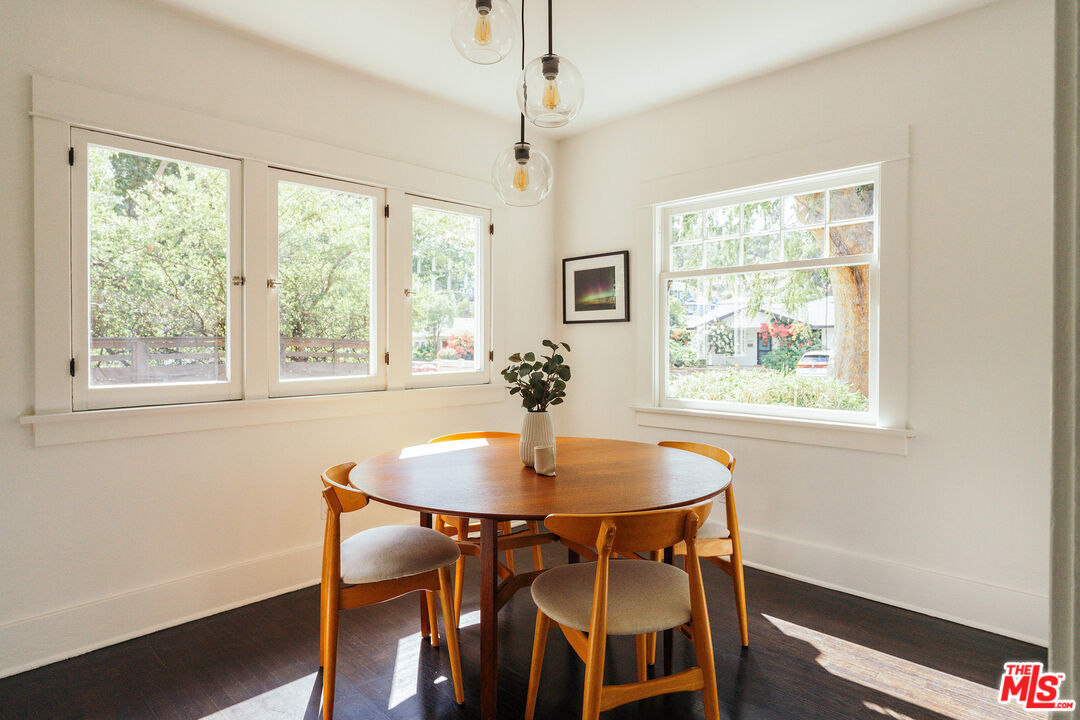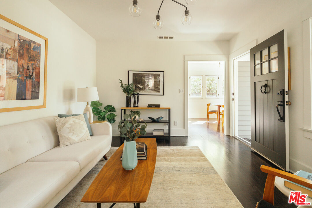 There's something magical about 4984 Vincent Avenue--from the moment you arrive, this storybook Craftsman on one of Eagle Rock's most desirable cul-de-sac streets welcomes you with the kind of timeless elegance that only a century of history can create. Past the picturesque front porch, find yourself in a living room and dining room where sunlight streams from picture windows onto original hardwood floors. The spacious kitchen is a showstopper that serves as the heart of the home, featuring custom cabinetry with paneled refrigerator, gleaming butcher block countertops, artistic tiling, professional-grade Wolf oven/range, and a charming Dutch door that opens to the garden beyond. The primary bedroom is a serene retreat with custom closet, French doors, and a newly renovated spa-like ensuite bath boasting dual rainfall + handheld shower heads and a bespoke vanity. Two additional bedrooms share a skylit bathroom with a clawfoot tub that feels straight out of a fairy tale. Every detail has been thoughtfully curated--from the reading nook accentuated by vertical statement windows to the built-in shelving offering additional storage throughout. Out back, discover a professionally designed garden sanctuary, lush with native plants, mature trees, tranquil fountain, and inviting patio and fire pit areas. Unwind after a long day on the deck outside your bedroom, enjoy dining al fresco with friends under twinkling lights, or explore the possibility of an ADU in the detached 2-car garage, entirely rebuilt in 2005. Located in the coveted Dahlia Heights Elementary School district and just a few blocks from Trader Joe's, Little Beast, Casa Bianca, and more, the home makes you feel like you're a world away--where kids ride their bikes on the street outside--while offering unparalleled urban convenience. 4984 Vincent is a once-in-a-blue-moon gem that seamlessly balances timeless craftsmanship and chic sophistication--don't miss your opportunity for a home that captures the heart of old Los Angeles, beautifully reimagined for modern life.