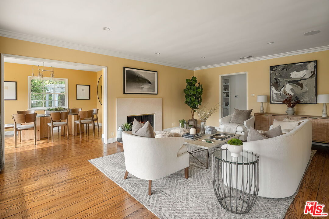Nestled in the highly sought-after Huntington Palisades neighborhood, this beautifully updated single-story residence has been fully remediated and is move-in ready for its next family. The inviting living room, complete with a fireplace and French windows, seamlessly connects to the formal dining room. The kitchen features premium appliances and a charming breakfast area. A cozy den with its own fireplace and French doors opens to the backyard, creating an ideal indoor-outdoor flow. The spacious primary suite offers a generous walk-in closet along with an additional closet for ample storage. Two additional bedrooms share a well-appointed bath, and a powder room adds convenience for guests. Elegant finishes throughout include hardwood floors and thoughtful design details. The private, fully fenced grounds have been professionally landscaped and showcase a bluestone patio and walkway, a pergola with seating, and a sparkling pool with spa perfect for relaxing or entertaining. A detached two-car garage is complemented by a wide driveway accommodating two to three additional vehicles. Just moments from the beach and Palisades Village's renowned shops and restaurants, this exceptional property is a rare opportunity.