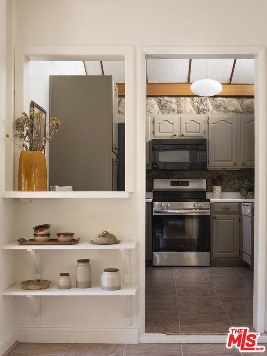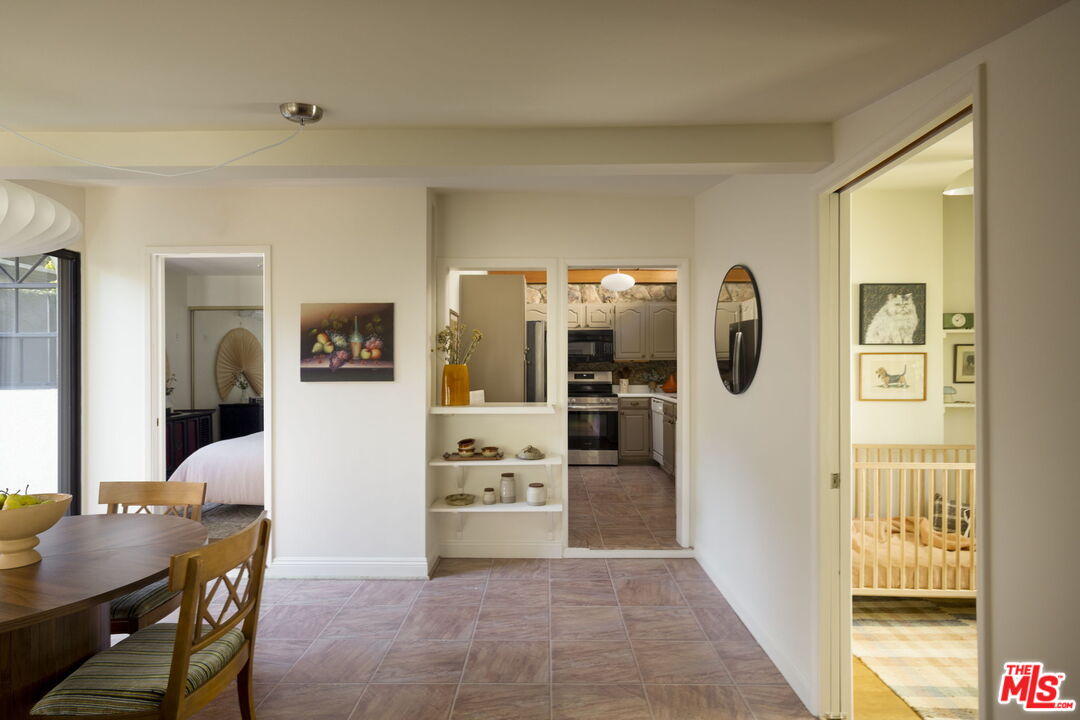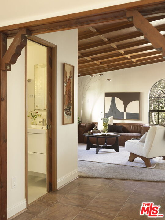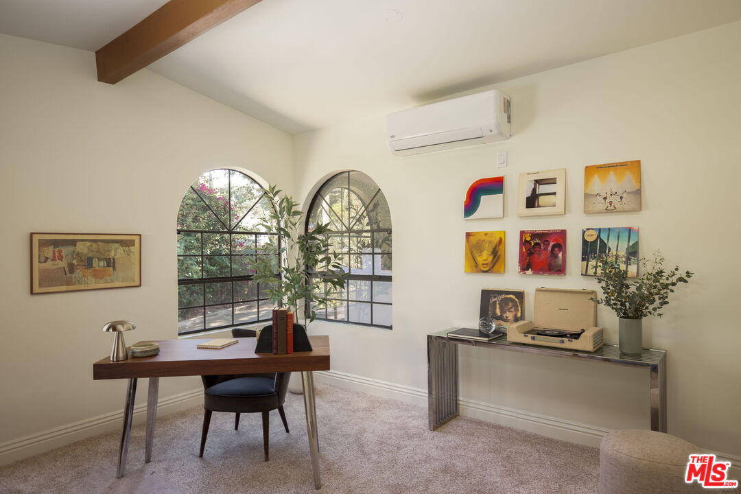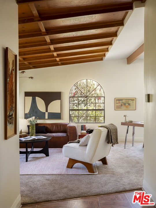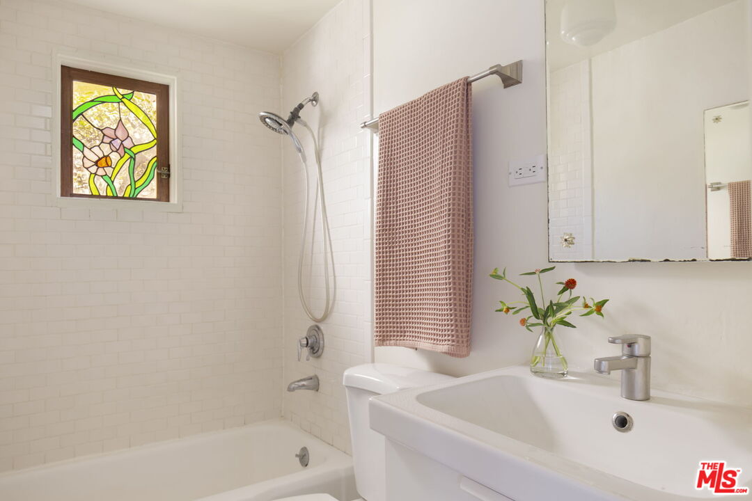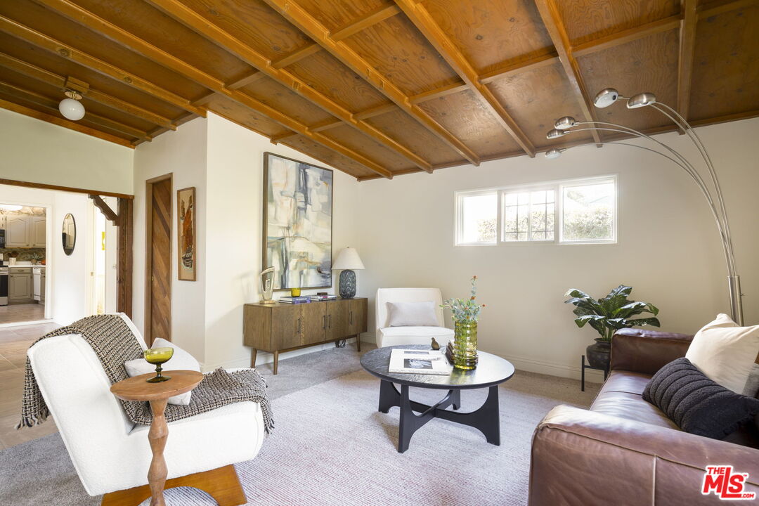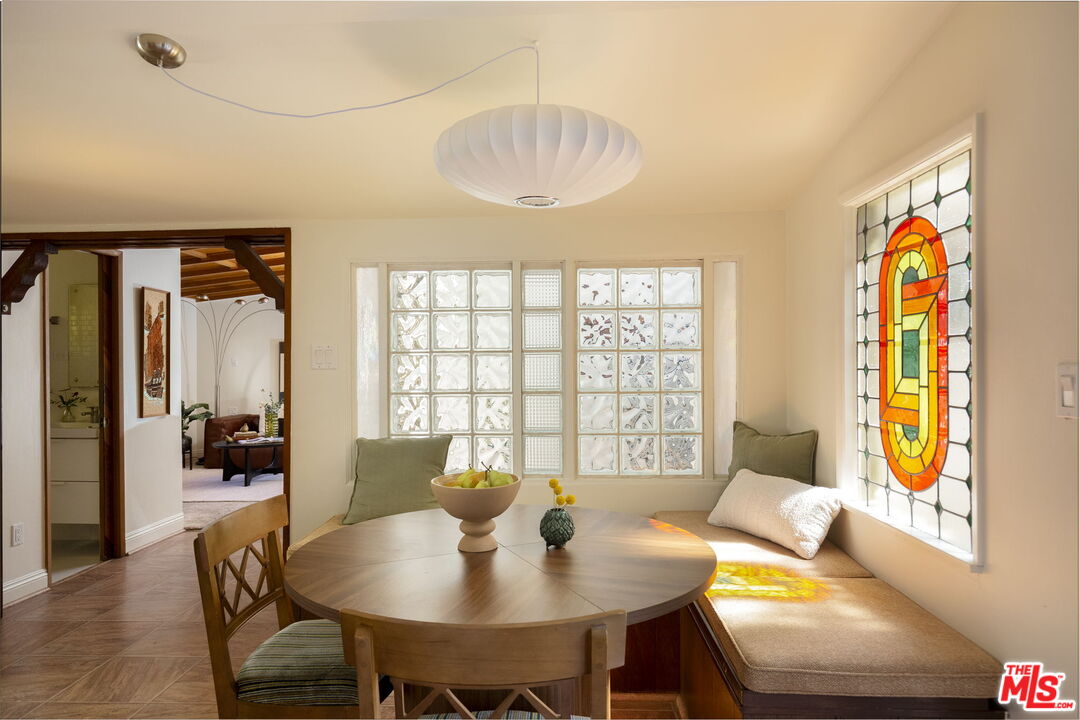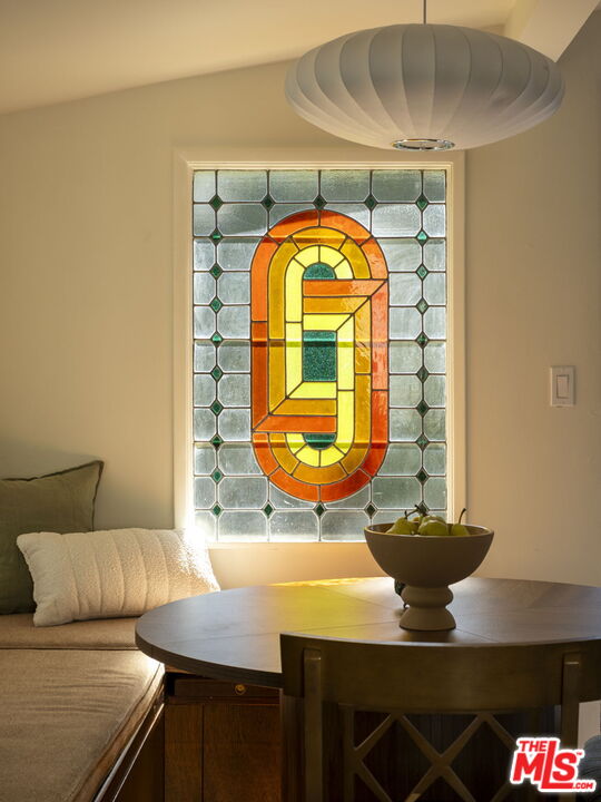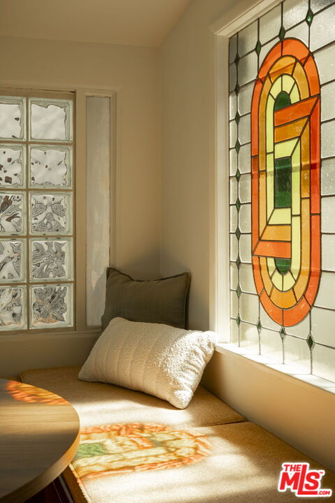 Welcome to 5011 El Verano. This 1915 cottage is tucked into an idyllic pocket of Eagle Rock. When inside you feel as if you've been transported to a remote place. Your retreat in the city. As you enter the home, you're welcomed with warm wood panel ceilings that pitch up for a dramatic living room. This expansive space can function as a living room as well as a flex space; good for an office, reading nook, or play area. In the center of the home is the dining room with a built-in corner bench with extra storage, a glass block wall with iridescent glass panel accents, and the most impressive stained glass window that brings color into the space as the light hits. The kitchen commands your attention with the stone wall, impressively pitched ceilings, a-frame window, vintage ceiling panels and a skylight. Behind the wood panel pocket door is the bathroom with antique mirrored storage cabinets and a sweet stained glass window. The primary bedroom is spacious and has a full closet wall. The second bedroom sits on the north side of the home with charming built in shelves and a full size closet. The sliding glass door leads to the courtyard. Enjoy your morning beverage here or take the stairs to the hilltop yard to enjoy the treetop and mountain views. The hillside is maximized for usability with a flat landing great for gatherings and an upper tier with more space for seating. You're minutes from Colorado and Eagle Rock Boulevard. Make Creatures Coffee & Plants your regular stop and conveniently enjoy amenities from Eagle Rock, and nearby Highland Park, and Glassell Park.