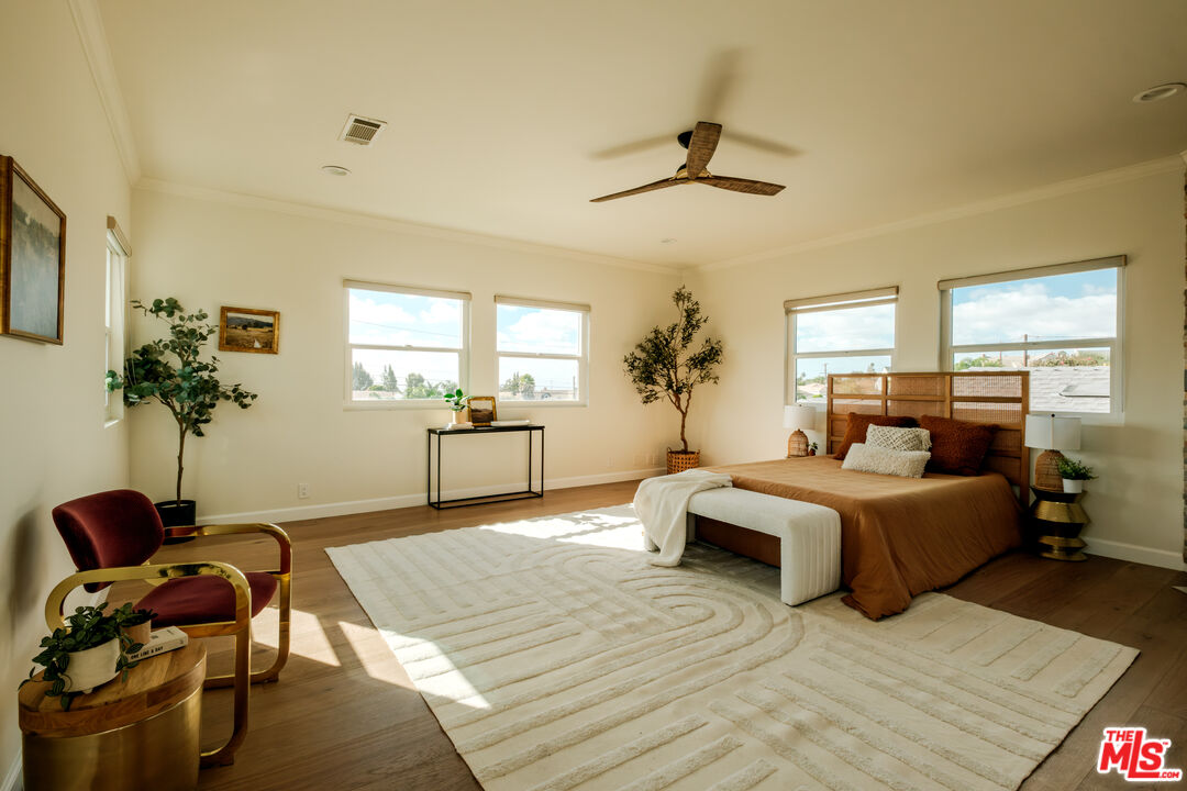 Four bedrooms, big yard and views! Set on a serene, tree-lined street in one of Los Angeles' most historic and prestigious enclaves in coveted View Park-Windsor Hills, this home offers timeless elegance, thoughtful updates and captivating views that stretch from the sparkling coastline of Long Beach to the cliffs of Rancho Palos Verdes. The heart of the home is the grand family-dining-kitchen area, perfect for hosting family and friends or enjoying quiet evenings, with large sliding doors open to the beautiful, low maintenance backyard. The chef-inspired kitchen has been thoughtfully updated with the prettiest 40" high end Ilve stove from Italy, custom cabinetry, and a large island, making meal prep a breeze. A separate formal living room is perfect for entertaining, with a charming bay window bringing in that glowing California sunlight. Multiple areas throughout the home are convenient for work-from-home or after school homework spaces. The 4th bedroom would make the most perfect spacious office, with bright south and west-facing windows. And storage space abounds, including a large under-stair storage area. Downstairs features 3 bedrooms including a secondary primary suite with walk-in closet and ensuite bathroom. Upstairs boasts an expansive primary retreat featuring stunning panoramic views. Wake up to breathtaking sunrises and unwind to golden hour vistas in a space designed for serenity and sophistication. The en-suite bathroom has been beautifully updated with dual vanities, a soaking tub, and a separate shower, offering spa-like tranquility. Whether you're hosting summer barbecues or simply enjoying the outdoors in peace, the large private backyard oasis provides a perfect setting for outdoor dining or quiet reflection, surrounded by lush landscaping. The home has been upgraded with newer flooring, roof, plumbing, electrical (including fully paid-for solar panels and a car charging plug), and central HVAC with Nest thermostat, ensuring comfort and efficiency for years to come. View Park-Windsor Hills is known for its stately historic properties, beautiful mature trees and generous lots that accentuate the gracious architecture of the 1930s through 1950s. Minutes away, enjoy local favorites such as: Hilltop Coffee (yummy coffee and try the beignets!), Jon & Vinny's and Helen's Wines, Simply Wholesome (housed in a Googie architecture building!), Puerto Nuevo (fun breakfast option!) and more. Close-by in downtown Leimert Park Village, enjoy ORA cafe (perfect for coworking!), All Chill ice cream, The Plant Chica and special events like the Leimert Park Jazz Festival. The Baldwin Hills mall features a lively saturday Farmer's Market and delicious cupcakes at Southern Girl Desserts. Just a hop and a skip away, you have so many fun options in West Adams: enjoy Highly Likely, Michelin-featured Cento Pasta, charbroiled deliciousness at Miz La La, fabulous meals at Alta, great wine at Adams Wine Shop, yummy Mian noodle, the best tacos at Bee Taqueria, enjoy a firepit-side dinner at Johnny's on Adams with a cocktail in hand, amazing cauliflower queso at Chulita and more. The new Whole Foods on Jefferson, Sprouts and Trader Joe's are just minutes away. You're also just moments from the heart of Culver City - ready to enjoy Hi-Lo Liquor, Cognoscenti Coffee, The Culver Steps with Erewhon and Salt 'n Straw, and many others. You may have the most beautiful neighborhood walk in LA - with a stunning stop at Rueben Ingold Parkway, walking trail high up on a bluff, with a stunningly gorgeous view overlooking the city. Have fun on the 13 mile Park to Playa bike trail (from the Baldwin Hills Parklands to the Pacific Ocean!) or explore the 400 acre Kenneth Hahn Park, with bonus 360 degree views of LA. You're also close to the Crenshaw train line, soon to the airport! All this in a vibrant neighborhood pocket just 20 min from DTLA, 10 min from Culver City, and 20 from the beach!
