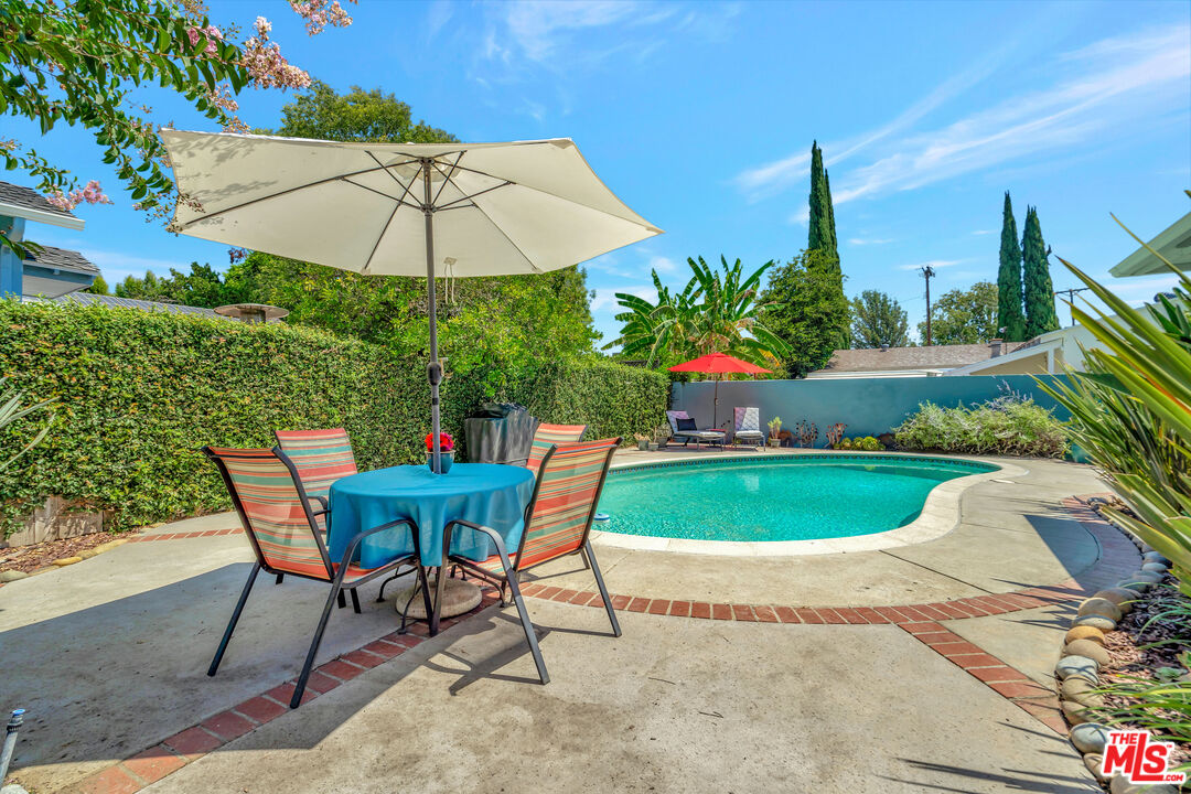 Your picture-perfect haven awaits at the end of a peaceful cul-de-sac, surrounded by gardens and sunshine. This pristine single-story Ranch blends timeless character with modern comfort, offering 1,722 sq ft of sunlit living space framed by oversized picture windows and original refinished oak hardwood floors. The newly landscaped wraparound yard creates a warm, storybook welcome with a cottage-style pollinator garden filled with seasonal color, hummingbirds, and butterflies.Inside, the generously sized living and dining rooms flow into a spacious kitchen with abundant cabinetry, stainless steel appliances, and a cheerful breakfast nook. A private bedroom wing features two generous bedrooms and a refreshed hall bathroom with original charm. The large family room includes its own entrance and a remodeled en-suite bath, creating flexibility for a guest suite, office, studio, or optional third bedroom, with the ability to open the floor plan even further if desired.The expansive 7,101 sq ft corner lot offers true California living with a classic sparkling pool, patio, lanai, newly rebuilt deck, dog run, lemon tree, garden area, and storage shed. Additional highlights include a dedicated laundry room, extensive storage, a new high-efficiency 17 SEER A/C system, and a full two-car garage with ADU potential.Surrounded by a warm, welcoming neighborhood, with the beautiful Van Nuys/Sherman Oaks Recreation Center just two blocks away, and moments from Trader Joe's, Gelson's, Fashion Square, Ventura Boulevard dining, and award-winning Kester Elementary. Turnkey, charming, and ideally located for effortless everyday living.