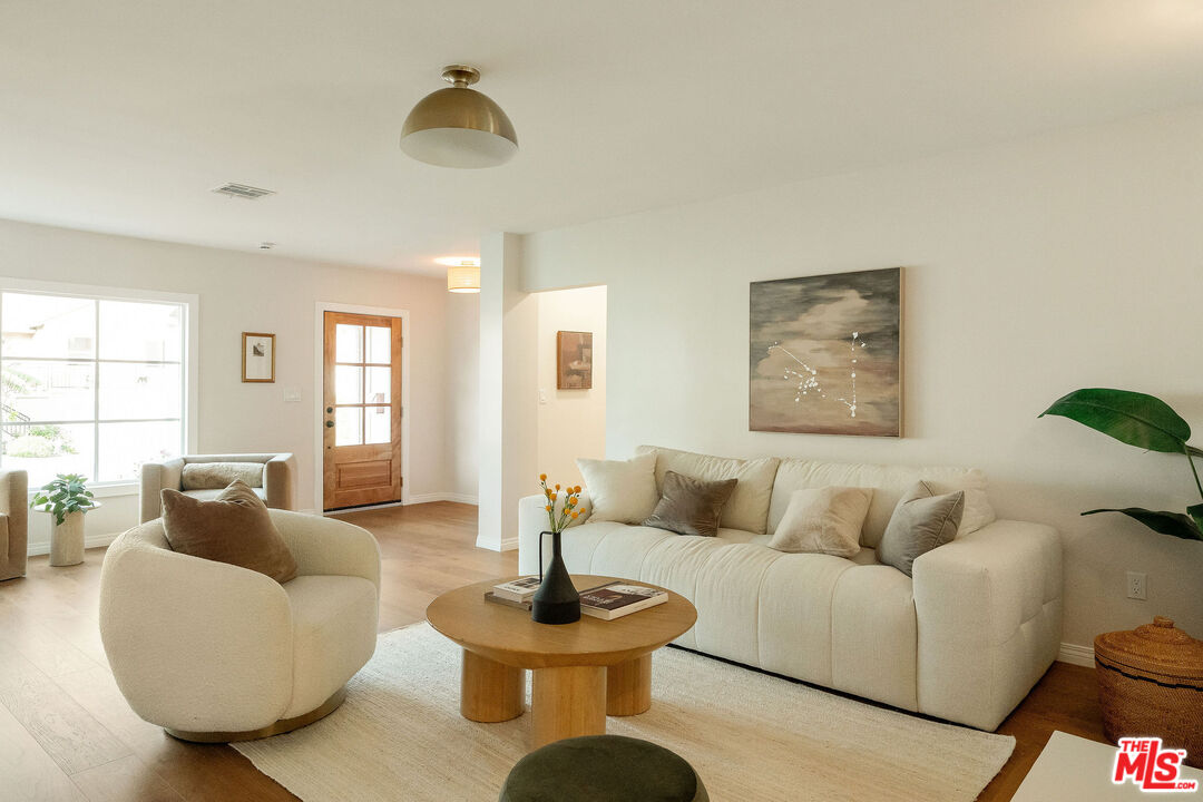 Perched on a gentle hill, this 3-bedroom, 2.5-bath home plus family room + office, feels both sophisticated and deeply personal a space where design and warmth coexist effortlessly. Sunlight pours through generous windows, illuminating a living room where a sculptural fireplace anchors gatherings and quiet mornings alike. At the heart of the home, the kitchen stirs a sense of joy and connection featuring custom cabinetry, new appliances, stone counters and a grand island for conversation. A built-in dining nook beckons for coffee refills, and offers design details that balance beauty with purpose. A cozy powder room is convenient but not intrusive, tucked down the hall as you head toward the gracious two-car garage. The primary suite is its own sanctuary, complete with a dual-vanity bath en suite that whispers calm at the start and end of each day, and boasts quartz vanities, new plumbing fixtures, and brand new tilework in the spacious shower. The primary accesses french doors to the grassy backyard for fresh air and sunlight. Two additional guest bedrooms offer ample room to grow. Upstairs, vaulted ceilings crown the family room, creating an airy retreat that feels both expansive and intimate. A dedicated office offers focus and inspiration perfect for creative work or quiet reflection. Outdoors, the private yard unfolds like a hidden garden made for golden-hour dinners and late-night laughter under the stars. Enjoy modern lighting, brand new engineered hardwood floors, new roof layer, LG and Fisher Paykel kitchen appliances, new electrical wiring and upgraded 200 amp panel, new copper plumbing, new central HVAC, new drip irrigation and sprinklers, newly installed sod, new planted florals including roses and a beautiful olive tree as you approach, new automatic garage door opener and more! Perfectly positioned near the 10 and 405, with easy access to Culver City, the Westside, and LAX. Locals know the draw of nearby gems Hilltop Coffee, Simply Wholesome, Jon & Vinny's Slauson, and the electric pulse of West Adams all just minutes away. Welcome home!