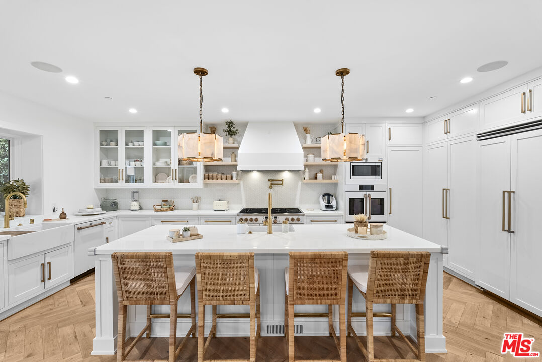 Nestled in the heart of the iconic Beverly Hills Flats, this exquisite estate blends timeless Mediterranean charm with modern luxury & thoughtful design. Completely remodeled from the studs between 2020-22, no detail has been overlooked in the meticulous renovation of this incredible home. Step inside to discover a bright, open floor plan flooded with natural light, showcasing impeccable craftsmanship & designer finishes throughout. The downstairs spacious layout includes an ensuite bedroom, powder room, temperature controlled wine closet, enclosed formal dining room which could be an additional bedroom or office, formal living & family rooms, and a seamless indoor outdoor flow. The spacious chef's kitchen, outfitted with premium appliances and new countertops flows seamlessly into the living room and out to the entertainer's backyard. Upstairs you'll find 4 bedrooms, all ensuite, with a curated design and charm. There is also a separate theatre room for movie nights at home. The primary suite is a true retreat, boasting a spacious walk-in closet & a spa-like bathroom with luxury fixtures and finishes. A newly built ADU, complete with a full bathroom, offers incredible flexibility. Currently used as a gym with a sauna, it's ideal for guests, a live-in nanny, or a private office space. The expansive backyard has been masterfully designed to feel both private and grand, with a sparkling pool, full basketball court, and a covered patio equipped with a built-in TV perfect for al fresco dining and year-round entertaining. It truly makes the lot feel enormous. Just moments from world-renowned Rodeo Drive, this exceptional home provides unrivaled access to the best of Beverly Hills, including luxury shopping, fine dining, and cultural landmarks.With all major systems recently updated this is the rare blend of location privacy, & luxury, and your opportunity to own a fully remodeled, move-in-ready home in one of L.A.'s most prestigious neighborhoods. This is Beverly Hills living at its finest.