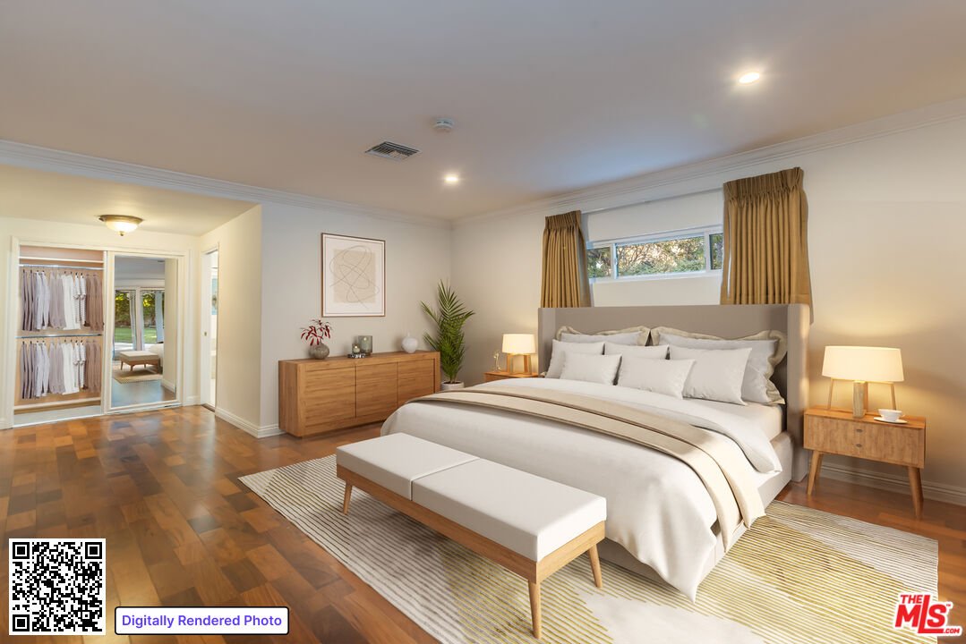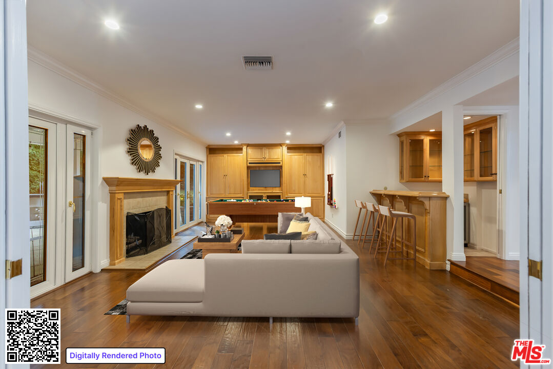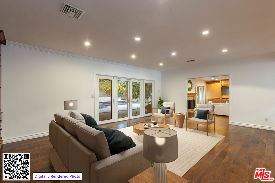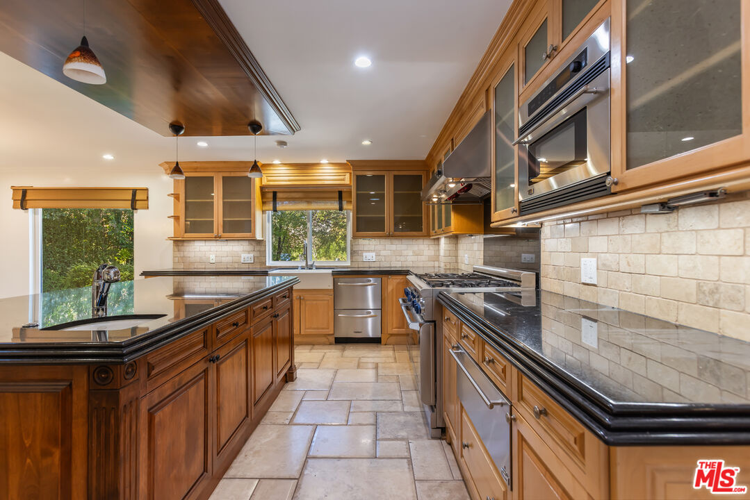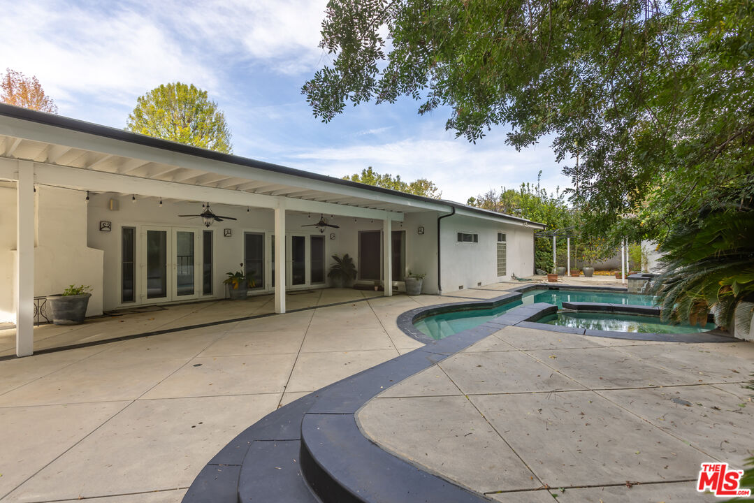 Tucked away on a quiet cul-de-sac in the Tarzana foothills just south of Ventura Blvd, this spacious residence offers 5 bedrooms and 4 bathrooms across more than 4,000 square feet on an expansive 16,000+ square foot lot. A welcoming horseshoe driveway leads to a two-car garage and an inviting interior filled with abundant natural light from large windows throughout. The custom chef's kitchen anchors the home and flows easily into generous living and entertaining spaces, complemented by ample storage throughout the property. The backyard is ideal for both everyday enjoyment and gatherings, featuring a pool, spa, water feature, BBQ area, grassy play space, and multiple seating areas. The primary suite is set apart in its own private wing, accessed through a hallway lined with extensive storage cabinetry. The suite includes direct access to the backyard, a walk-in closet, and a spacious bathroom with separate tub and shower. Additional bedrooms are well-proportioned, and a conveniently located guest powder room adds functionality. On the opposite side of the home, a secondary wing offers a large versatile room suitable for a media room, recreation space, guest quarters, or home office, providing flexibility for a variety of lifestyles. Additional features include a whole-home water filtration system, solar, and a thoughtful floor plan designed for both comfort and functionality, all in close proximity to popular shopping, dining, and services along Ventura Boulevard.