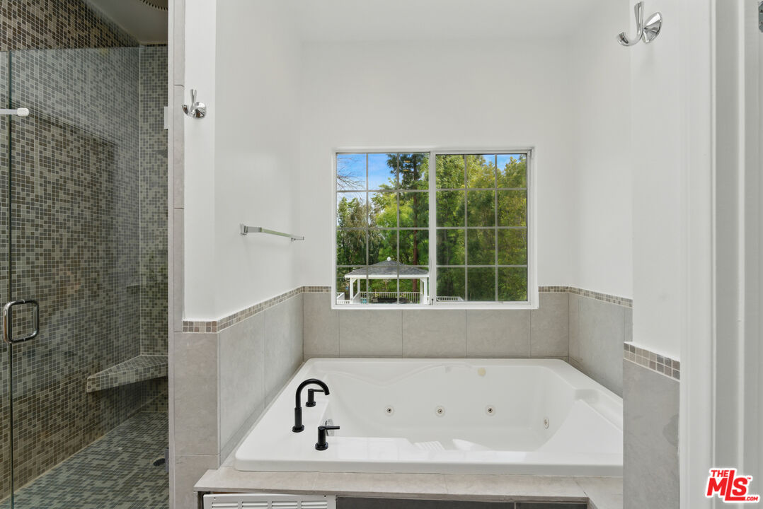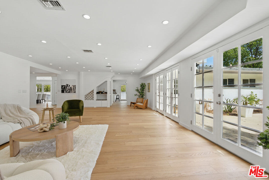 This enchanting storybook home, nestled on a peaceful, tree-lined street, seamlessly blends modern updates with timeless charm. Set on nearly 20,000 sqft, the property offers exceptional curb appeal with five spacious bedrooms, four bathrooms, a half-circle driveway, and mature landscaping, creating a private paradise. Inside, the contemporary traditional design radiates natural warmth, featuring custom White Oak flooring, recessed lighting, a cozy fireplace, and a stylish bar area bathed in abundant natural light. The expansive dining room, with an additional nook and grand fireplace, is perfect for entertaining. The chef's kitchen offers generous cabinetry, countertop space, a breakfast area, breakfast bar, and high-end stainless steel appliances. The primary retreat is a true sanctuary with vaulted ceilings, a private balcony, a spacious walk-in closet with custom cabinetry, and an en suite bathroom with a rainfall shower, Jacuzzi tub, skylight, and double vanity. The backyard is an oasis, with an oversized pool, waterfall Jacuzzi, charming cabana, and an outdoor kitchen with a grill and sink ideal for al fresco dining and entertaining. The expansive lawn provides endless possibilities for recreation including Tennis Court and space for a potential 2,300 sqft ADU (buyer to verify). Additional features corner lot including a side driveway leading to the bottom level, an attached two-car garage, an expansive side yard, a dedicated laundry room, and central AC/heat. Conveniently located near trendy restaurants, shopping, and amenities such as The Village, Cedars-Sinai, Whole Foods, and Equinox, with easy access to the 101 Freeway, this home offers the perfect balance of privacy, luxury, and convenience. Prepare to be amazed. *Some photos are Virtually Staged both Interior and Exterior including Tennis Court*